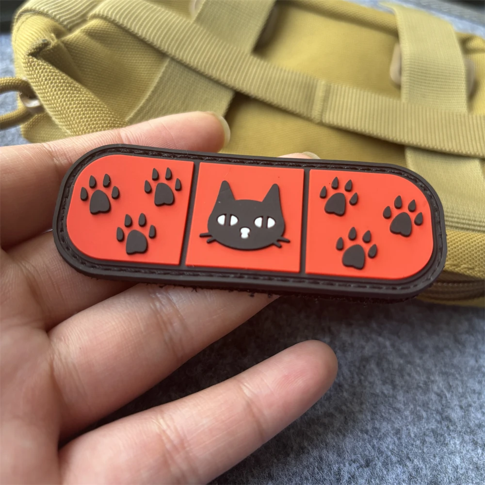 Parche táctico de PVC para tiritas de gatos, bonitos parches de gancho y bucle para gatos en la ropa, insignia de moral militar, brazalete, pegatinas para mochila