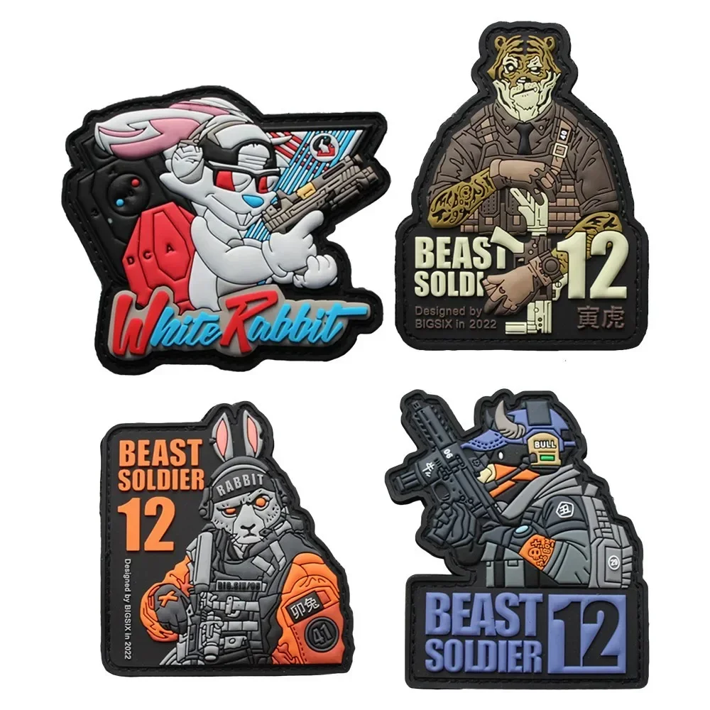 Bestia Guerrero PVC Hook & Loop parche táctico zodiaco chino militar conejo Tigre dragón perro moral insignia en mochila