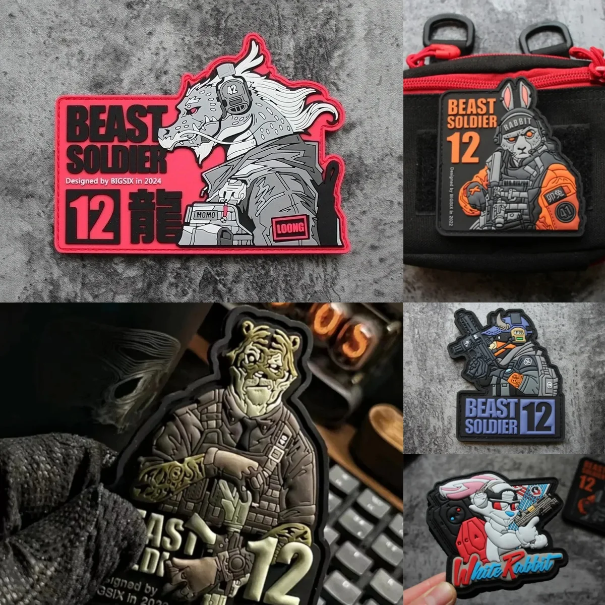 Bestia Guerrero PVC Hook & Loop parche táctico zodiaco chino militar conejo Tigre dragón perro moral insignia en mochila