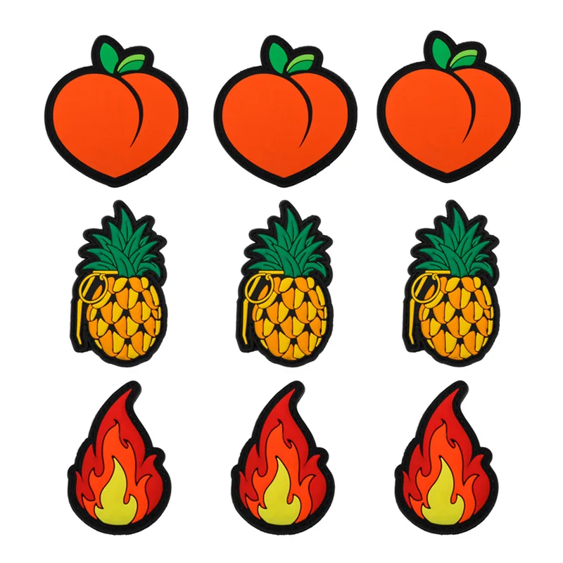 Parche táctico de PVC de melocotón, insignia de moral de piña, insignia militar con llama divertida, gancho y bucle, pegatinas de brazalete para ropa y mochila