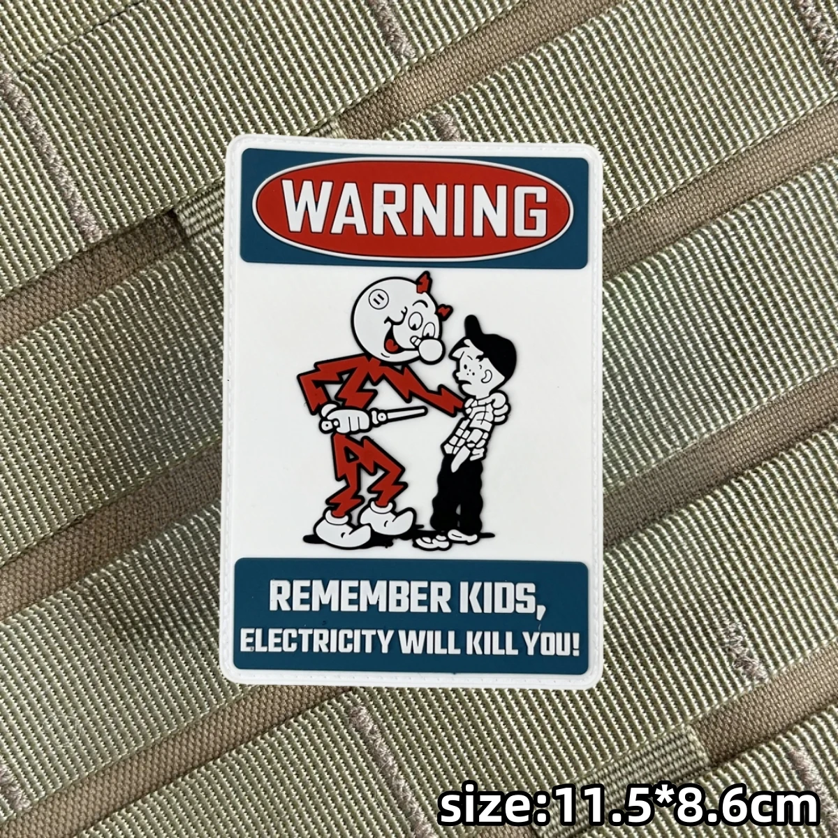 Remember Kids Electricity Will Kill You Parche de PVC Insignias de moral táctica en mochila Pegatina Parches de gancho y bucle para ropa