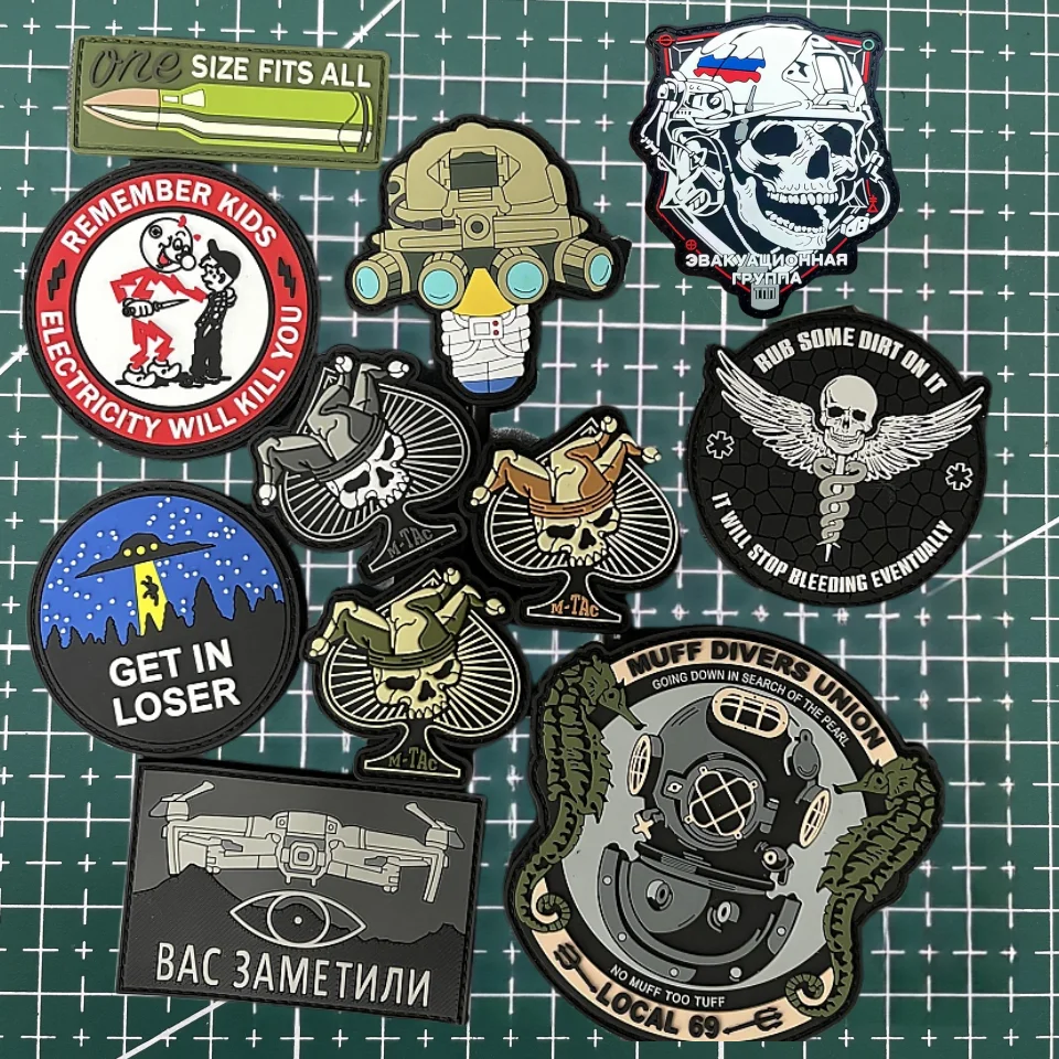 Parche táctico de PVC de talla única para casco de visión nocturna, parches de gancho y bucle de Calavera, insignia de moral de payaso, mochila rusa UAV, brazalete
