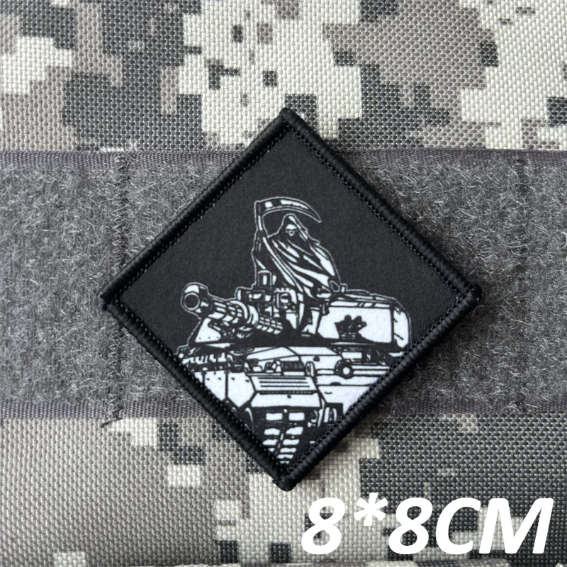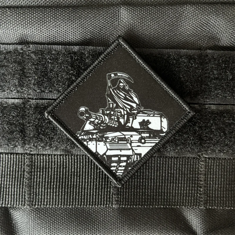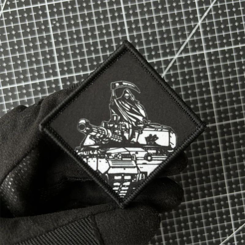 Parche táctico de tanque Reaper, insignia de moral de esqueleto, parches de impresión para ropa, mochila militar con gancho y bucle, pegatinas Punk Death