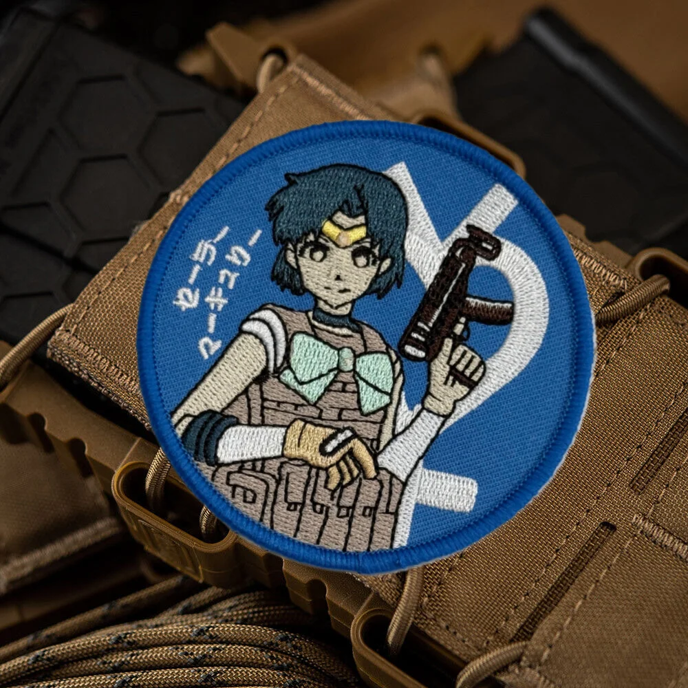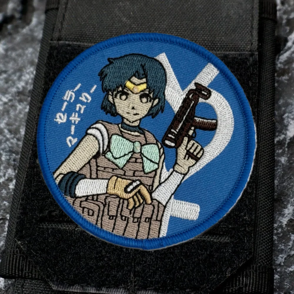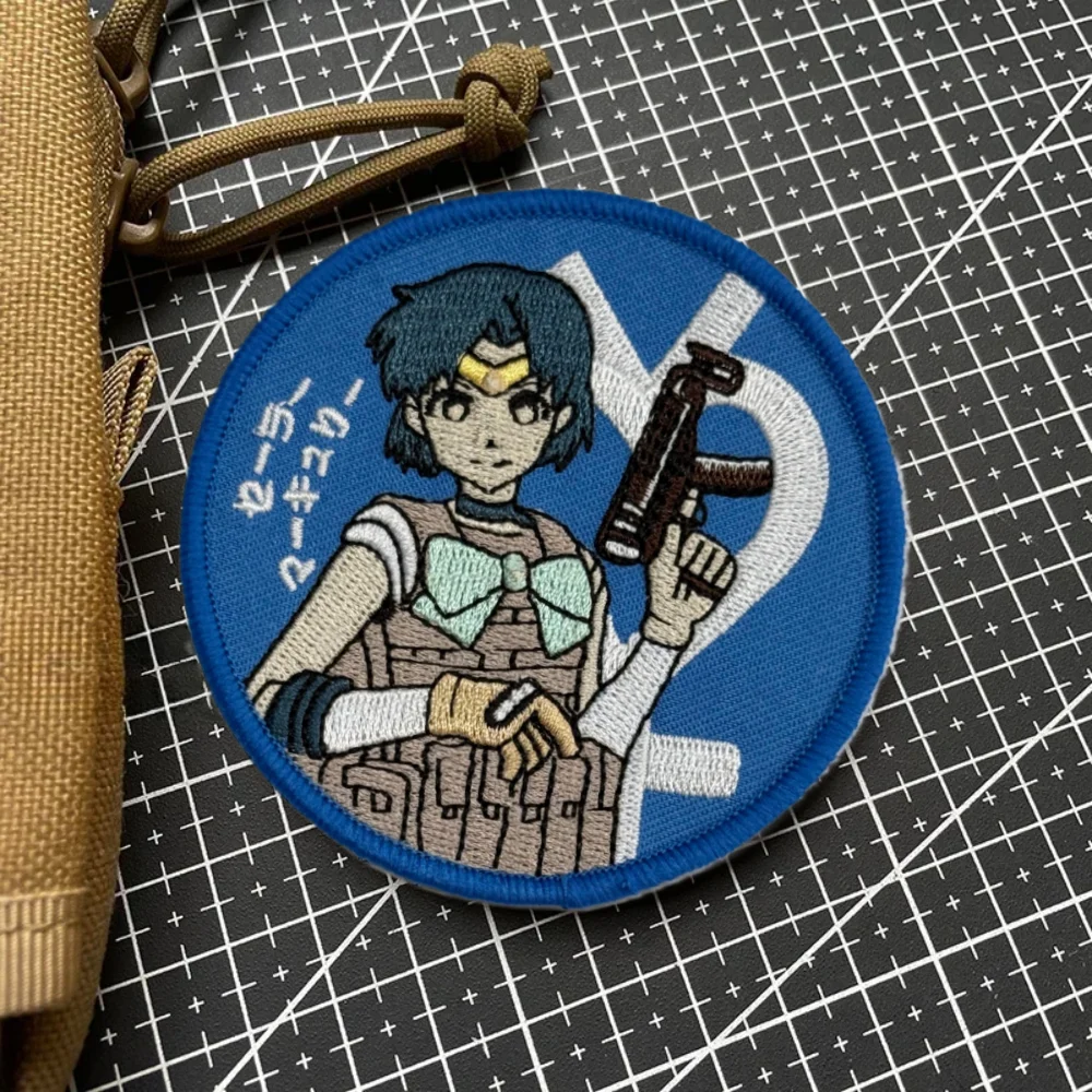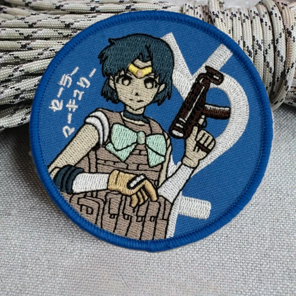 Parche táctico Sailor Moon Shooter Chica de anime Waifu bordado parches de gancho y bucle brazalete insignia de moral militar pegatinas para mochila