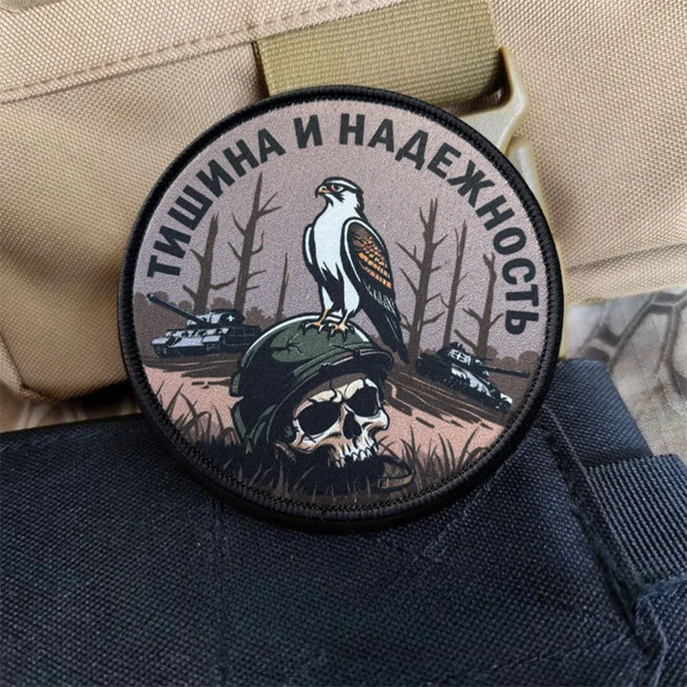 Parche táctico de silencio y confiabilidad, insignia de moral de gancho y bucle de cuervo, pegatina de brazalete militar para ropa, mochila, chaleco, equipo para exteriores