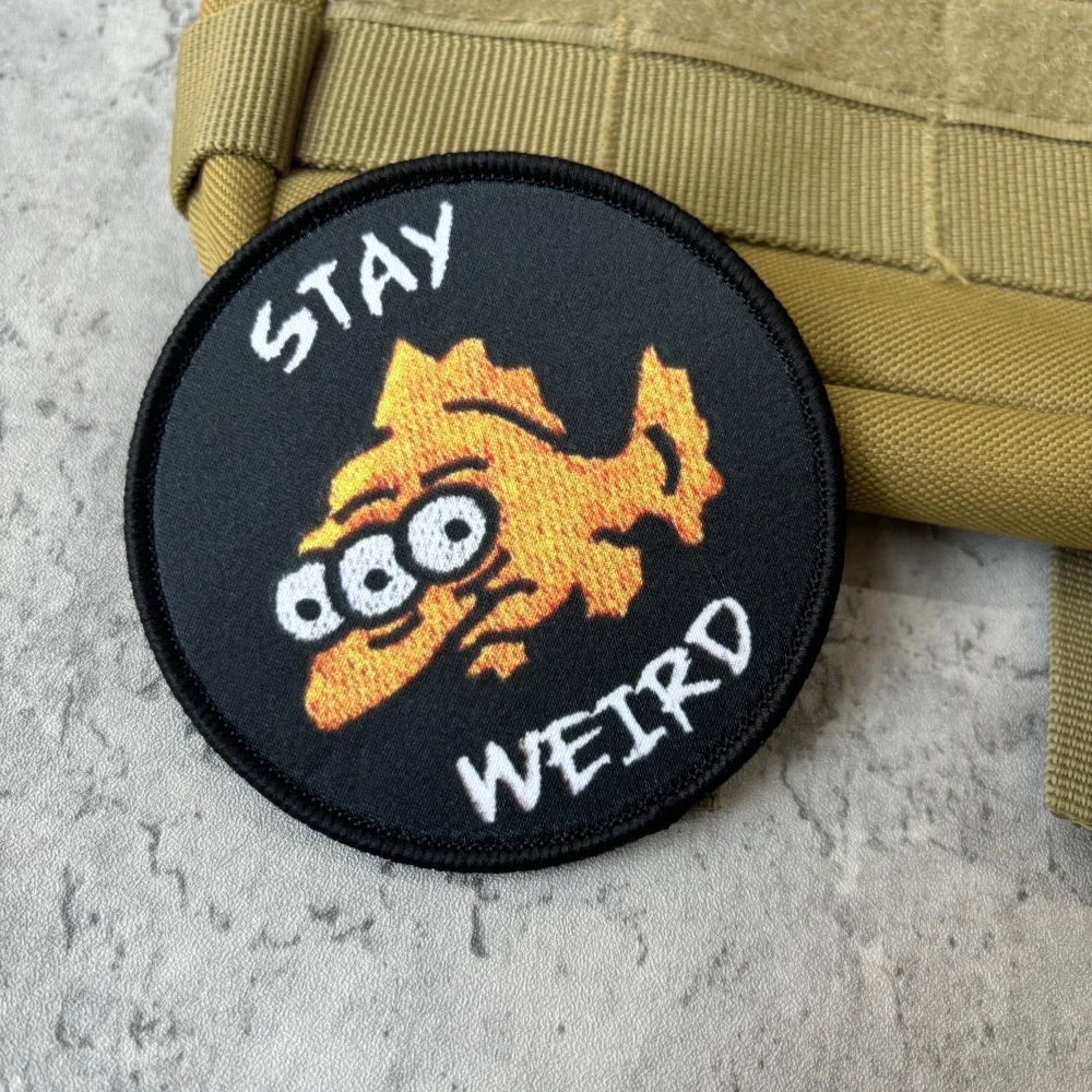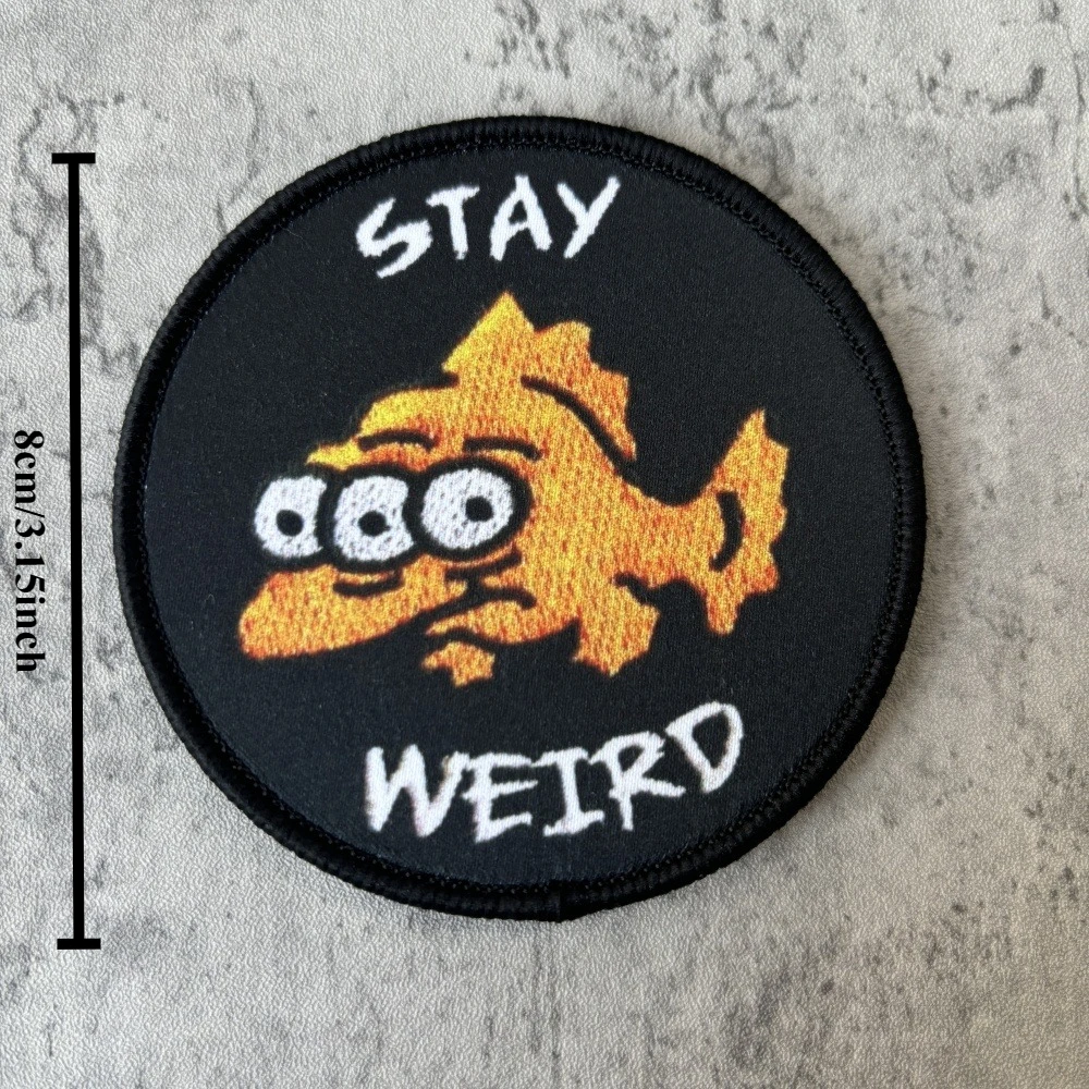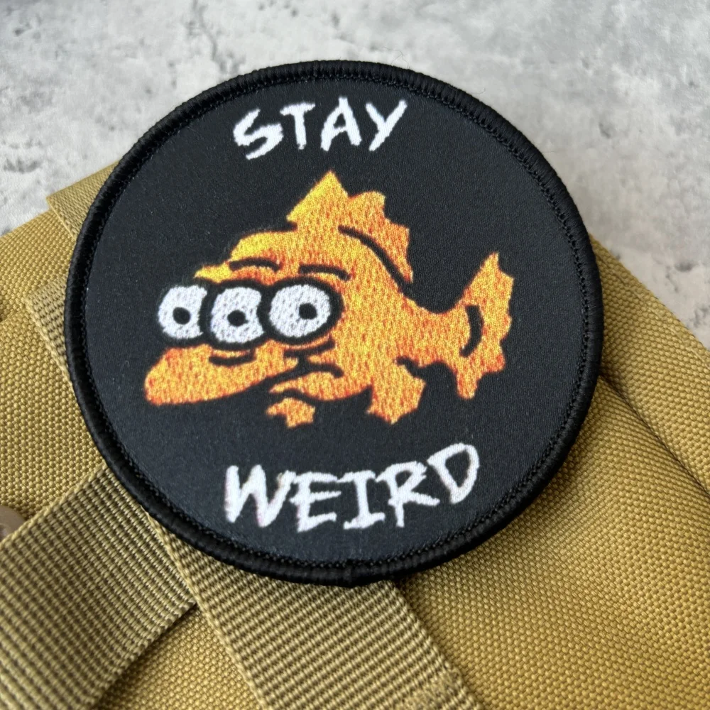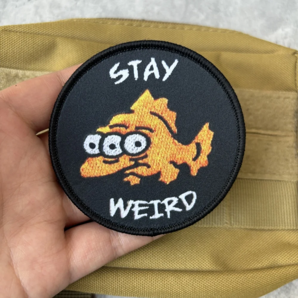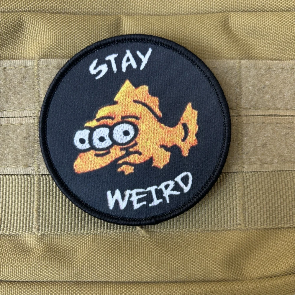 Parche táctico Stay Weird Fish para ropa, emblema de gancho y bucle impreso divertido, insignia de moral militar, brazalete, pegatinas para mochila