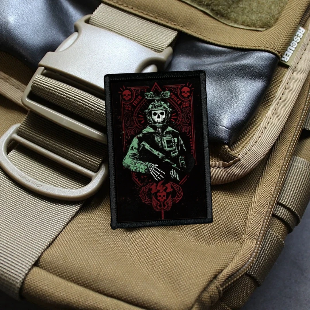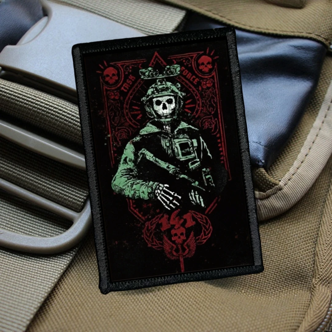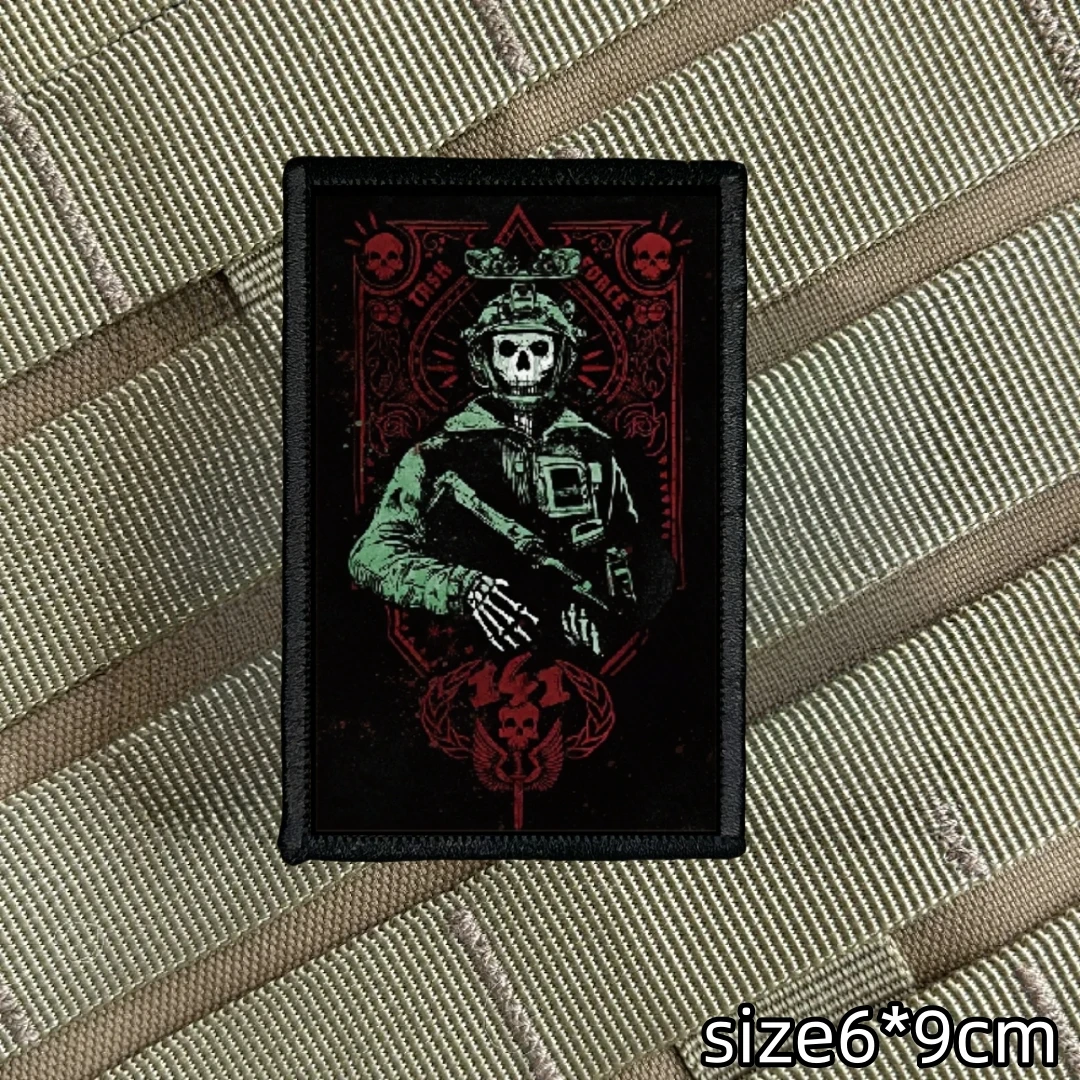 Parche táctico TASK FORCE 141 CÓDIGO Call of Duty Máscara de fantasma Insignia de moral Mochila militar Etiqueta Parches de bucle de gancho de impresión