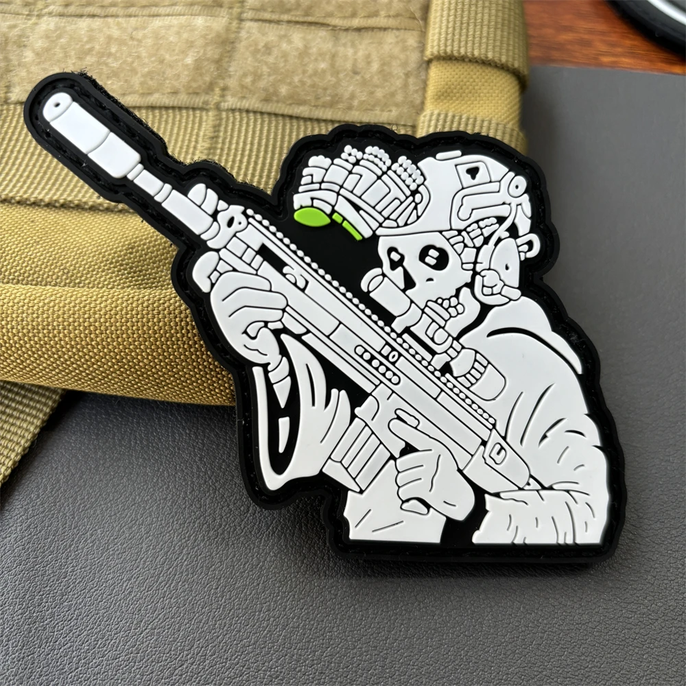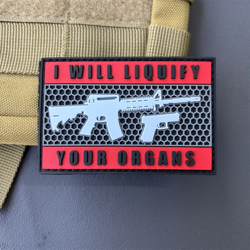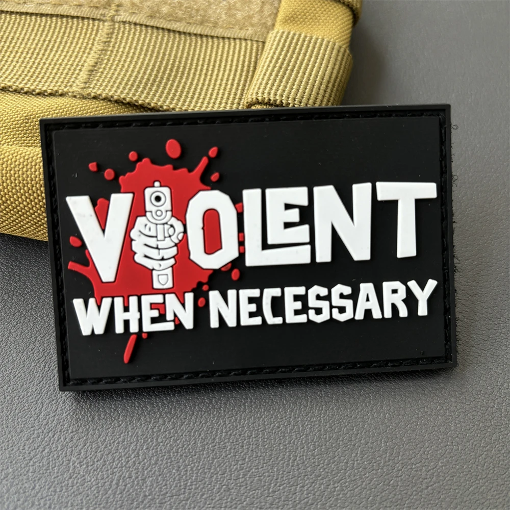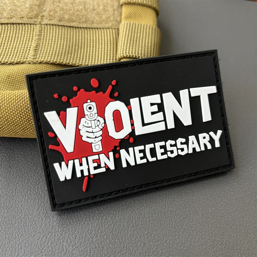 Parche táctico violento cuando sea necesario, Parche de gancho y bucle de PVC, Calavera militar con pistola, insignia de moral, brazalete, mochila, pegatinas para ropa