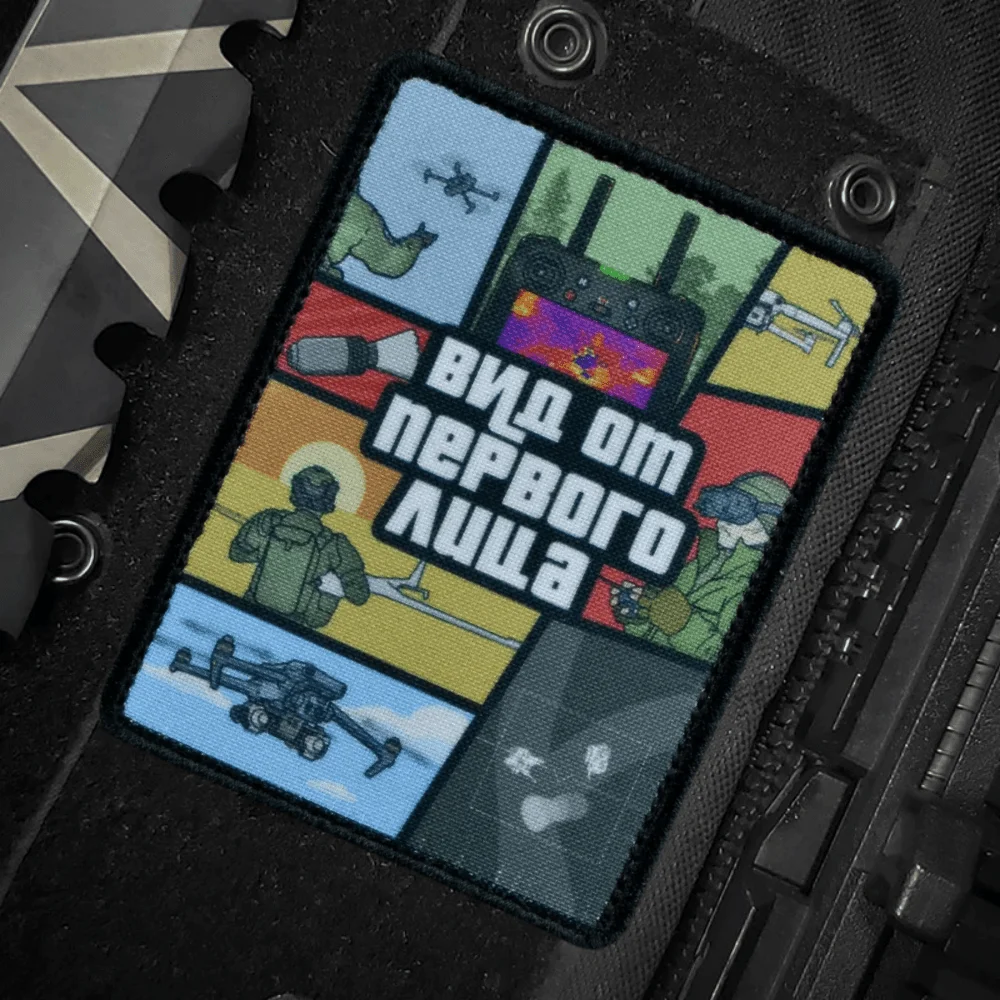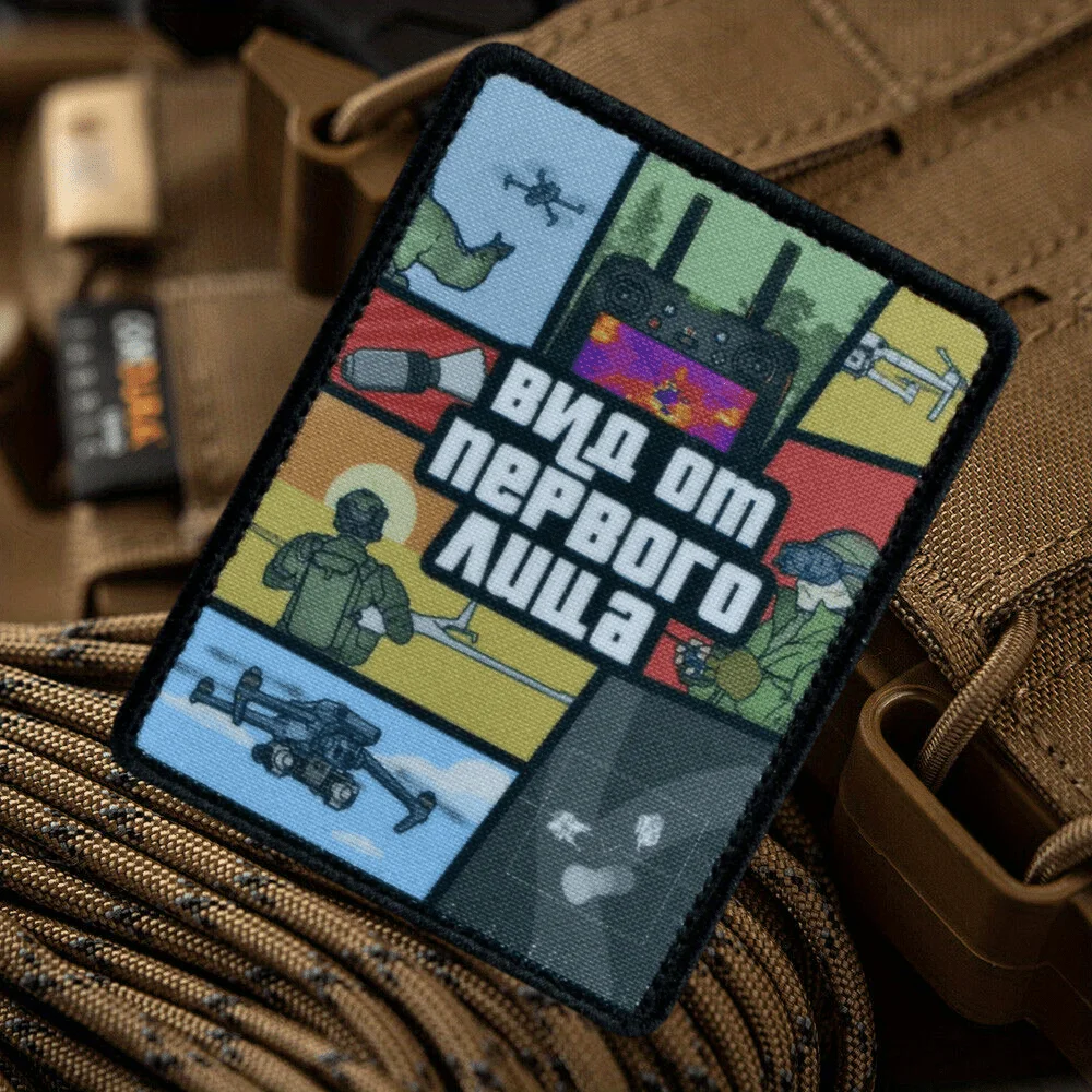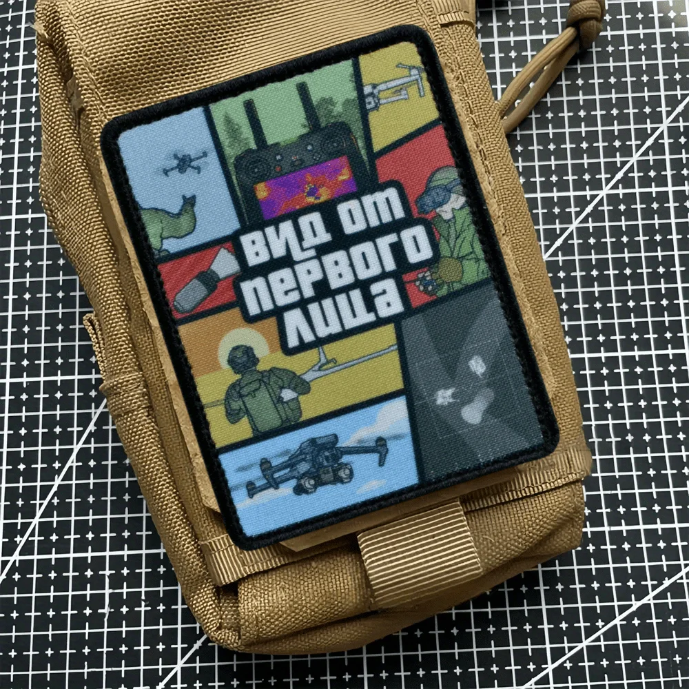 Parche táctico "vista de la primera persona", parche de gancho y bucle, Klett, Dron militar, tirador, brazalete de moral, apliques de combate, pegatinas para mochila