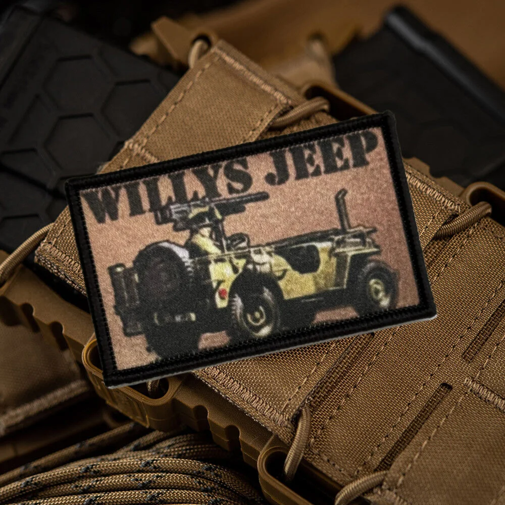 Parche táctico Willys Jeep para ropa, parches de gancho y bucle impresos para coche, brazalete, insignia de moral militar, pegatinas para mochila