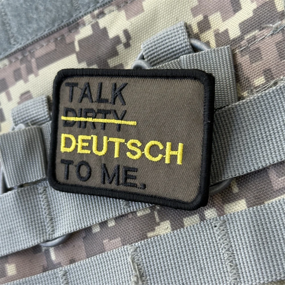 Parche Talk Dirty Deutsch to Me bordado con gancho y bucle, parches militares tácticos de moral para ropa, pegatina para mochila