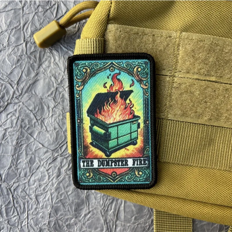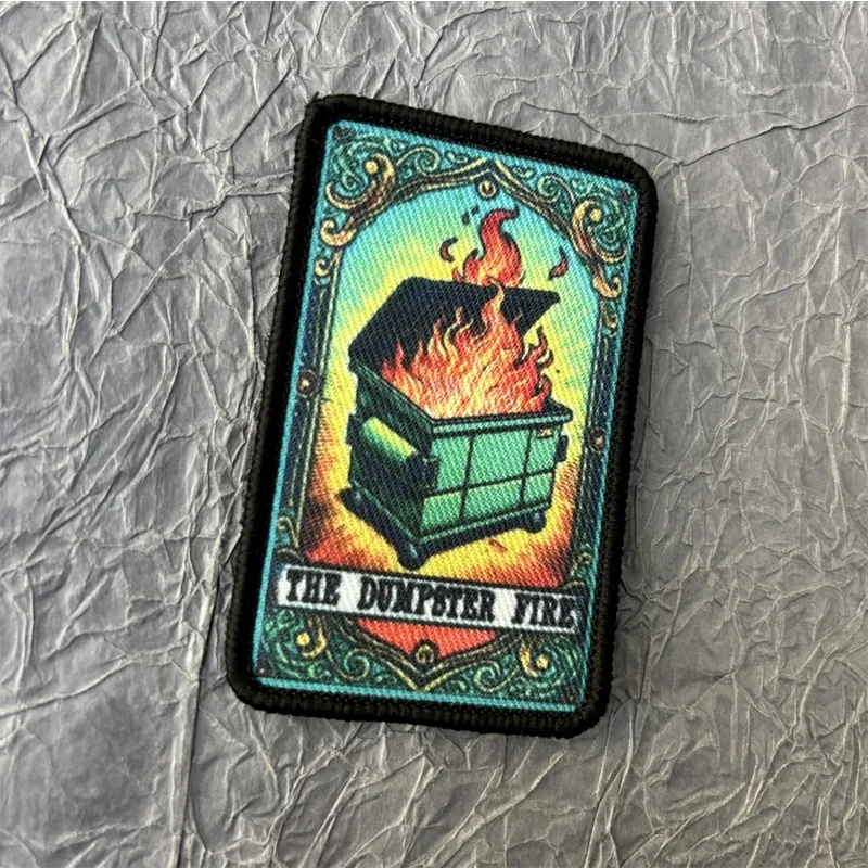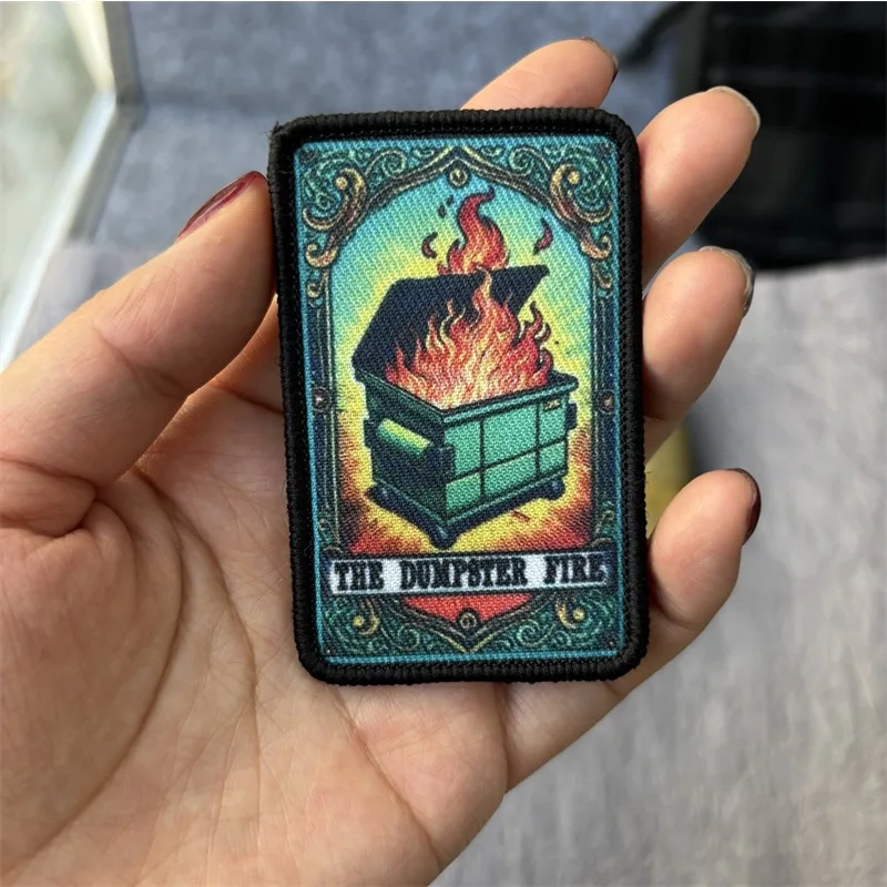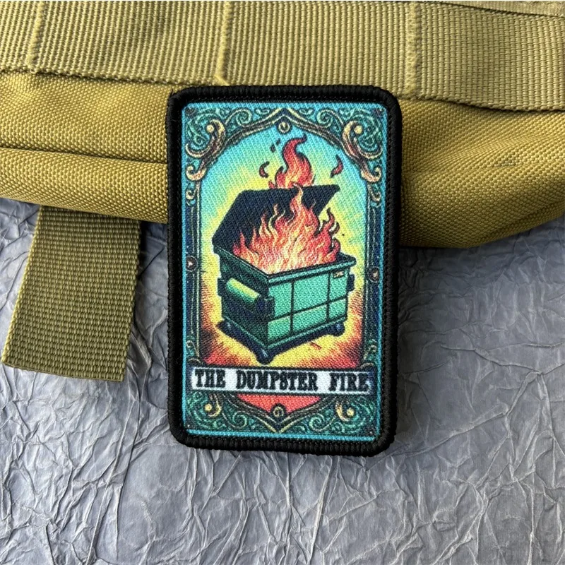 Parche de tarjeta de Tarot de fuego Dumpster en ropa, insignia de moral, brazalete, gancho y bucle, parches militares tácticos, pegatina para mochila