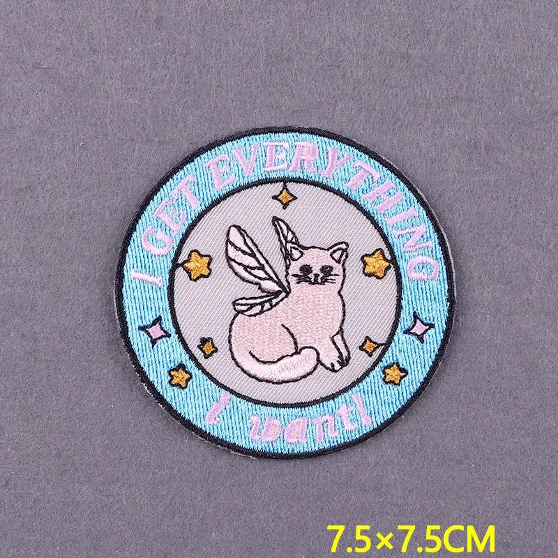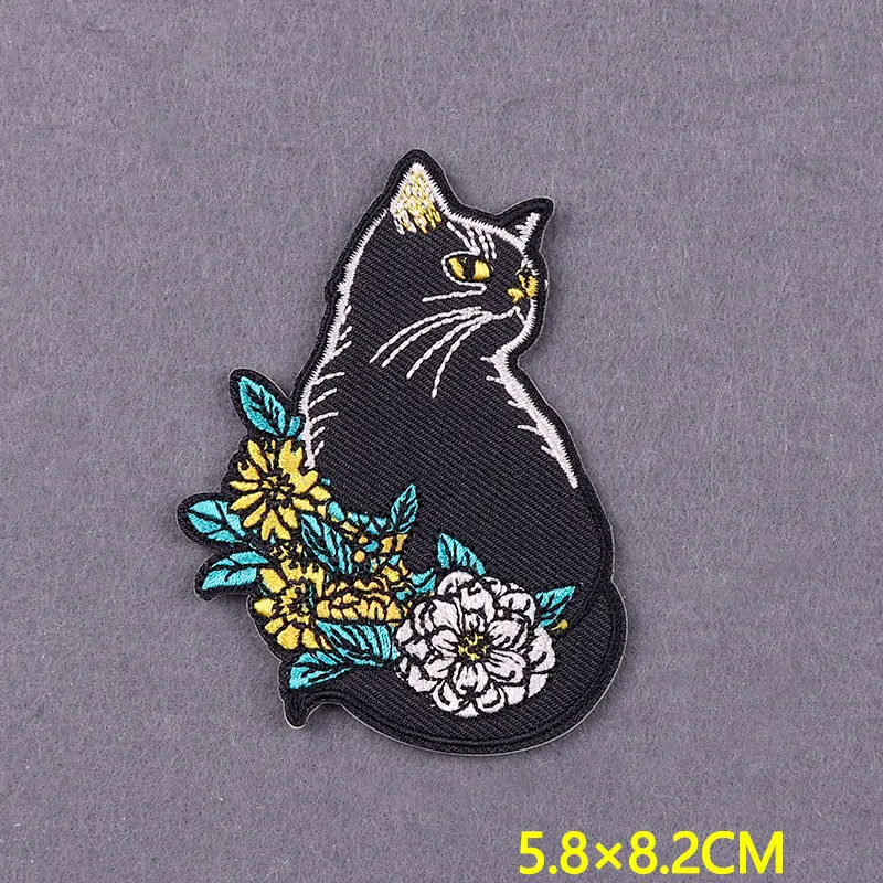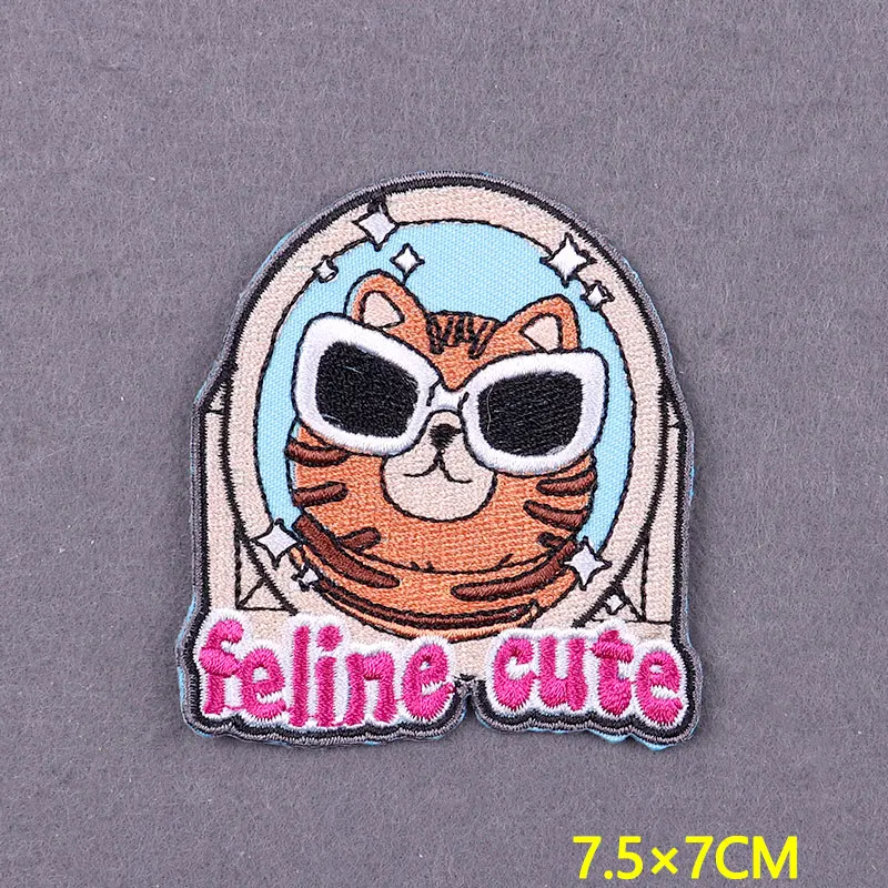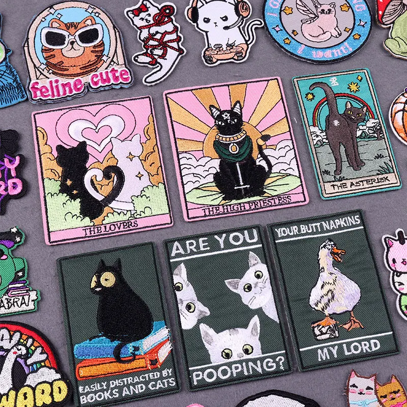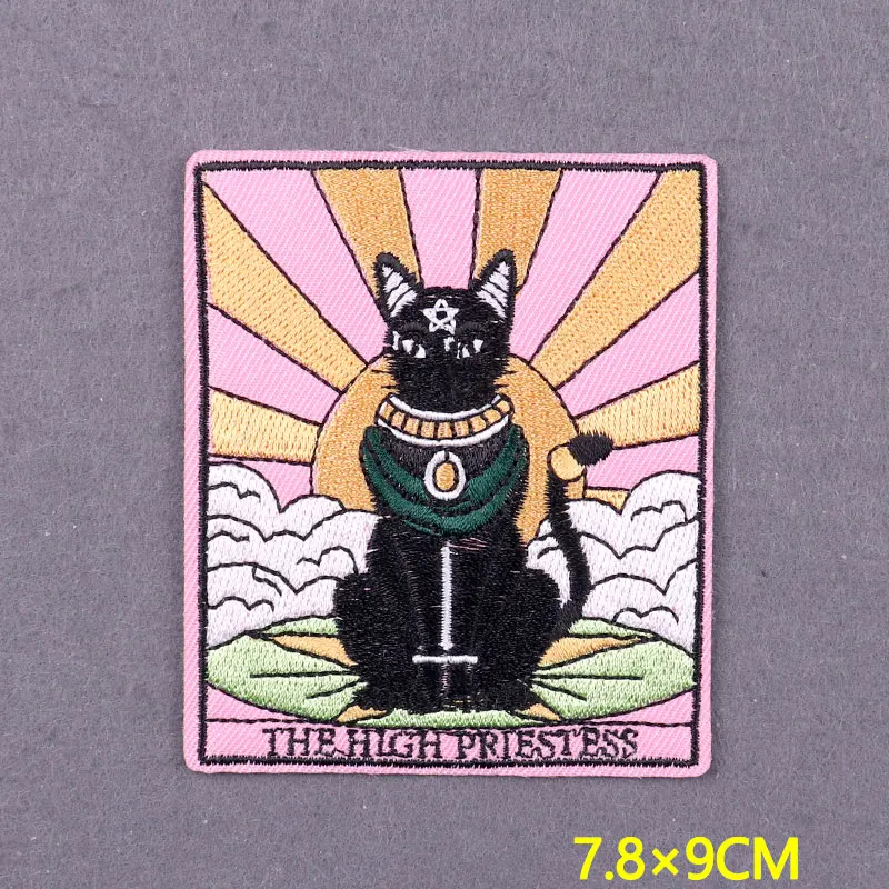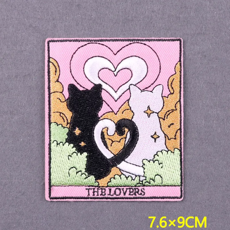 Parche de Tarot de gato bonito, parches para planchar en la ropa, ropa de animales de dibujos animados DIY, parches bordados a rayas para decoración de insignias de ropa