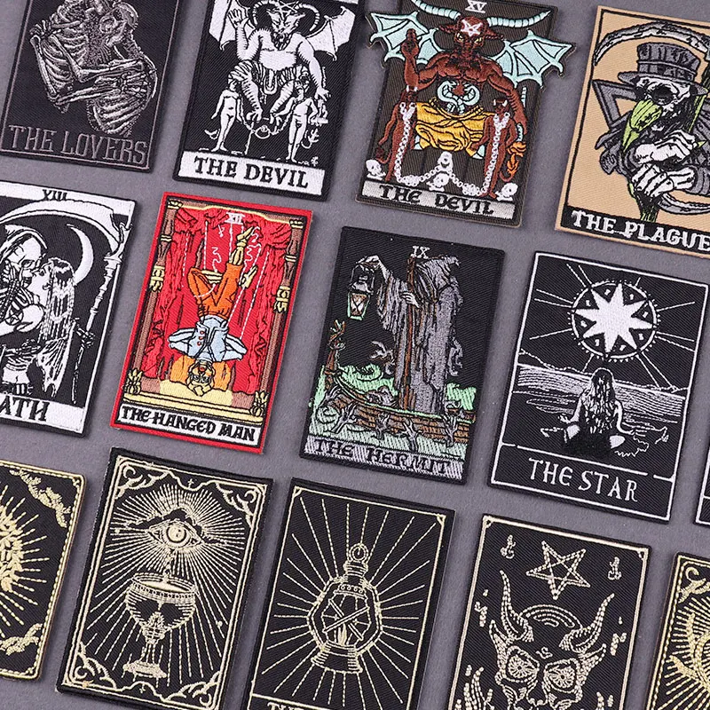 Parche de Tarot, parches de hierro para ropa, parches bordados de rayas misteriosas para ropa, parches de ropa DIY con insignias de hierro