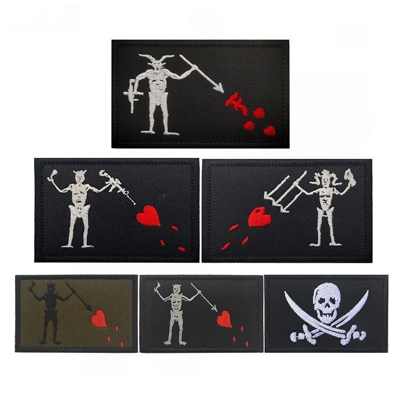 Parche de tela bordado con barba Pirate Edward, con tres cruces y parche de corazón rojo, insignia para brazalete, parches militares para ropa