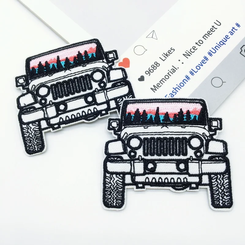 2pcs Off Road Vehicle Embroidered Cloth Patch DIY Decoration Sticker, Iron-On For Clothes, Pants, Hats, Shoes And Phone Cases.