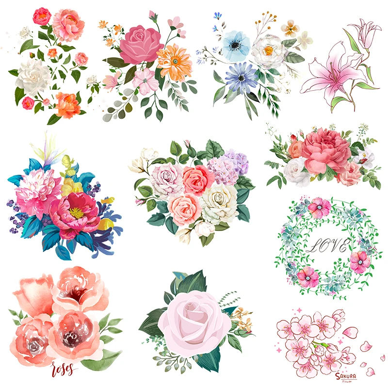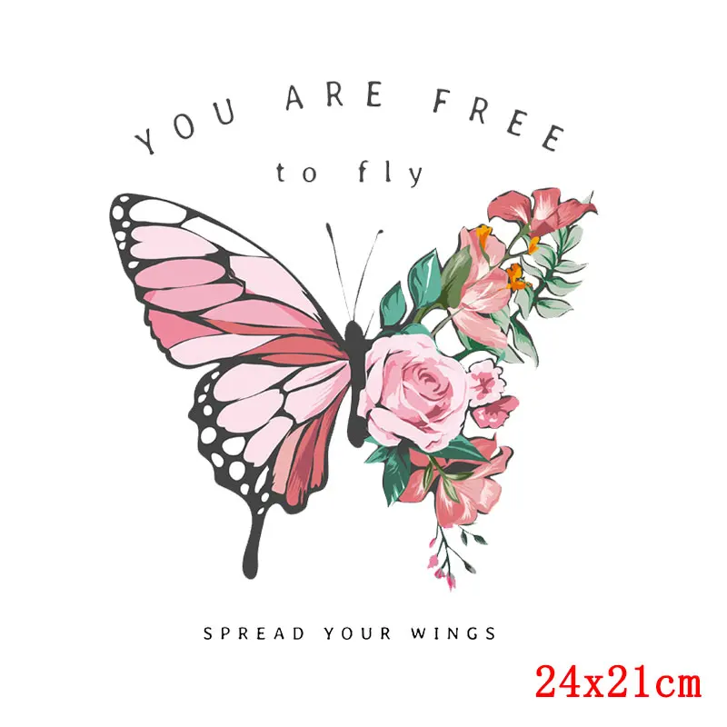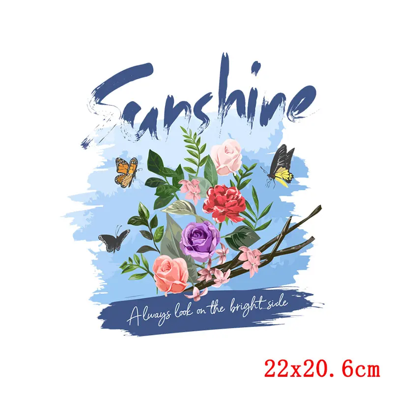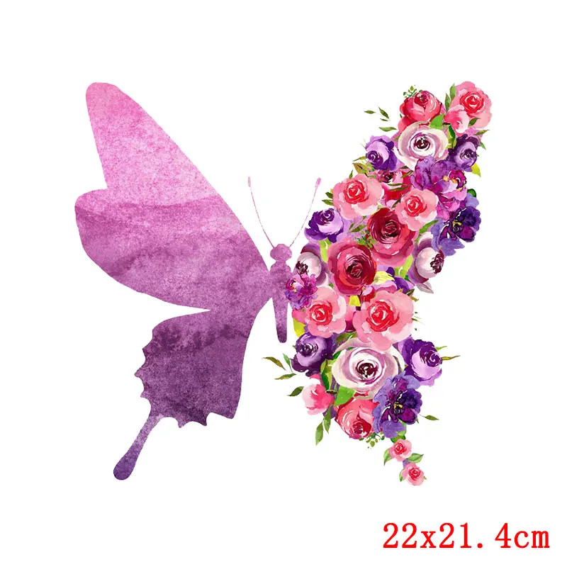 Parche de flores, pegatina térmica para ropa, parches de mariposa de dibujos animados para camiseta, transferencia de hierro para ropa, apliques térmicos DIY