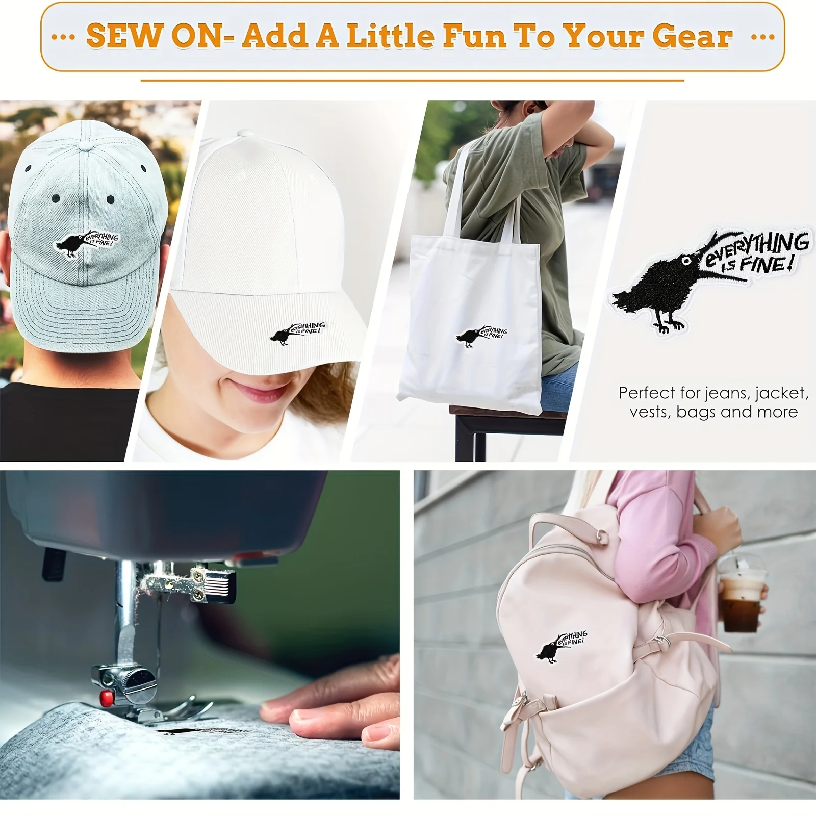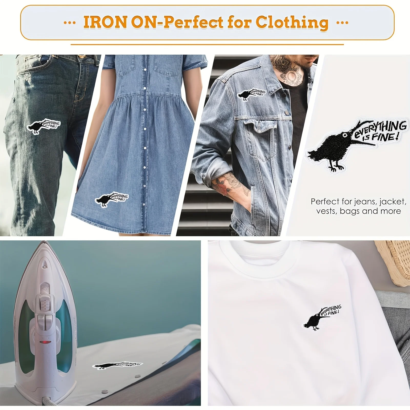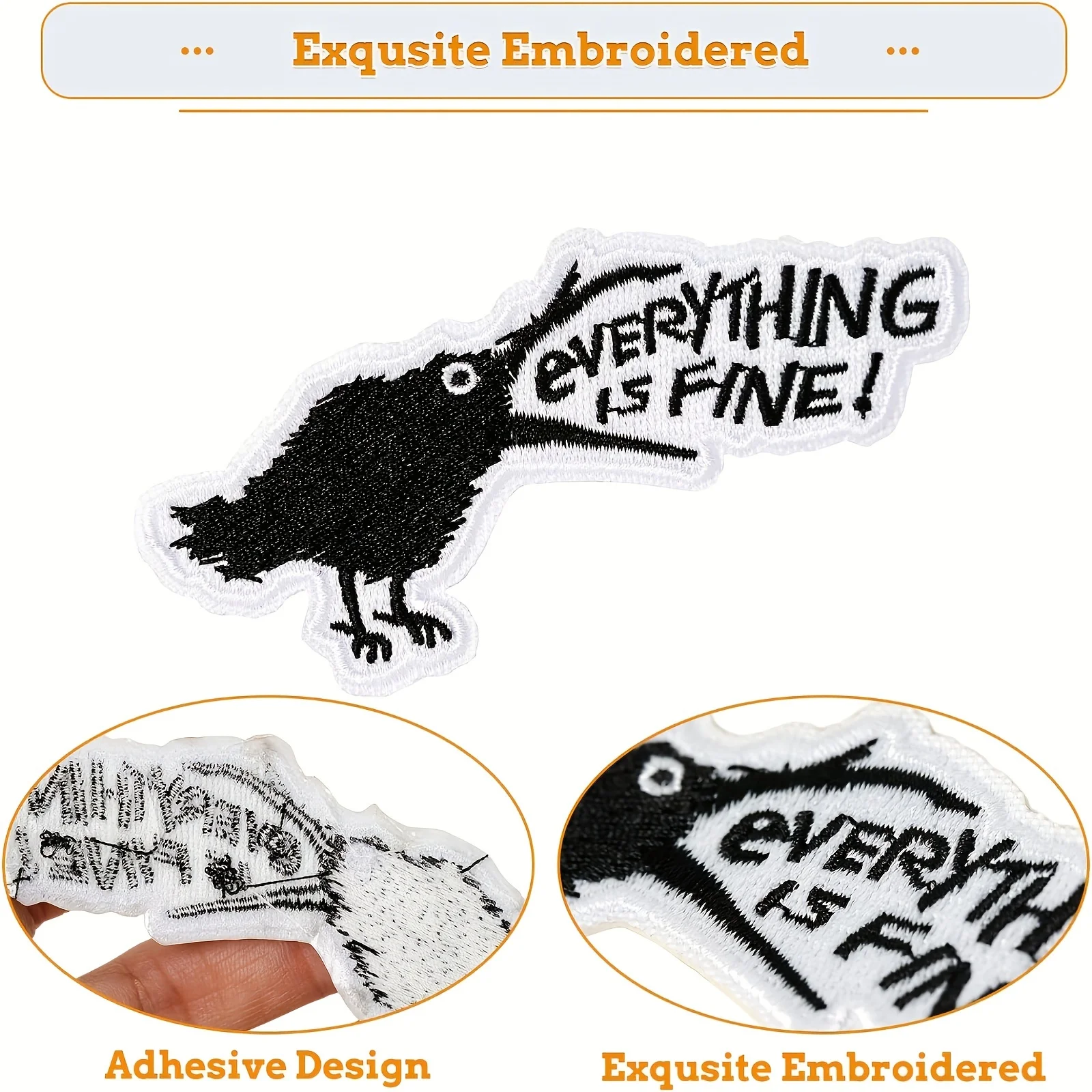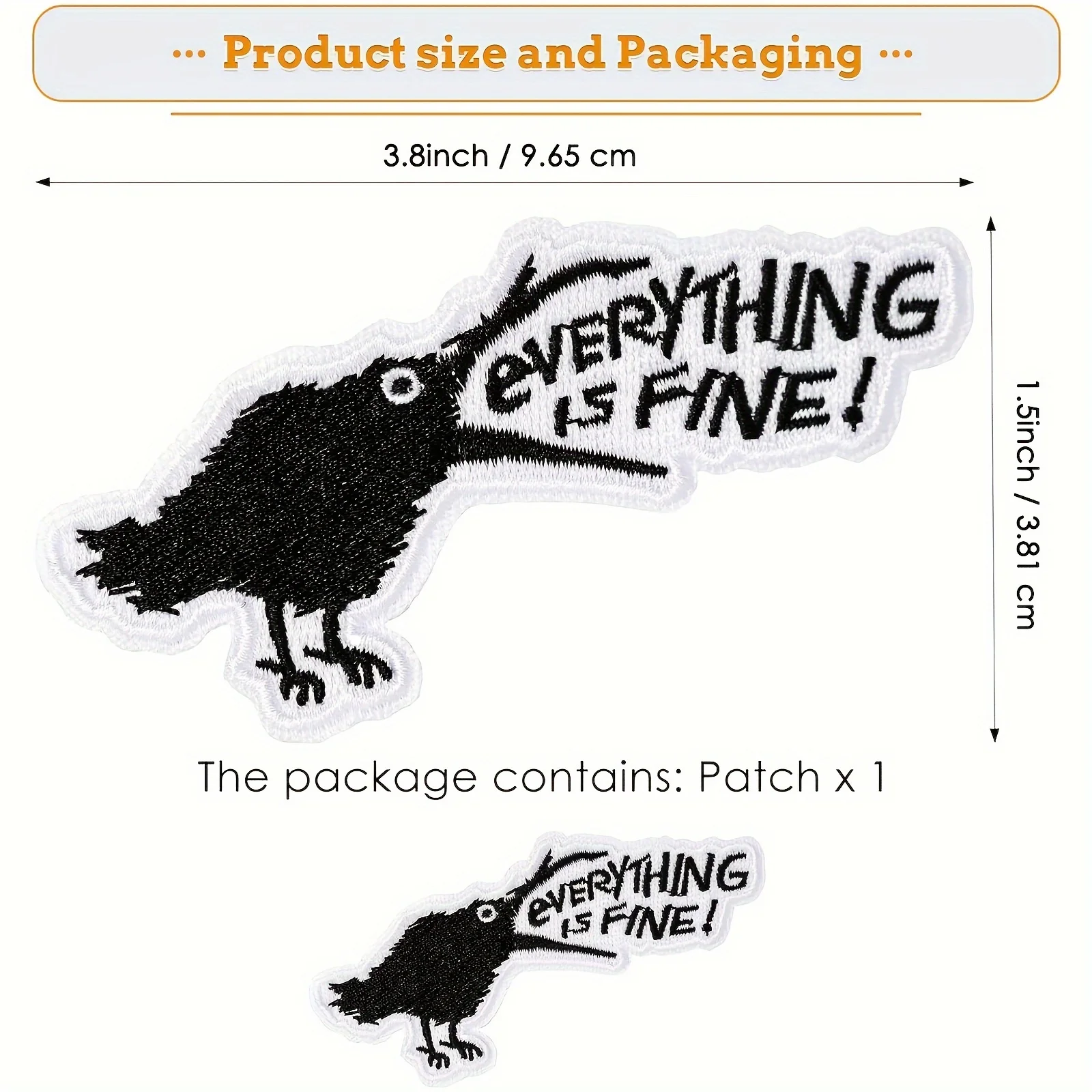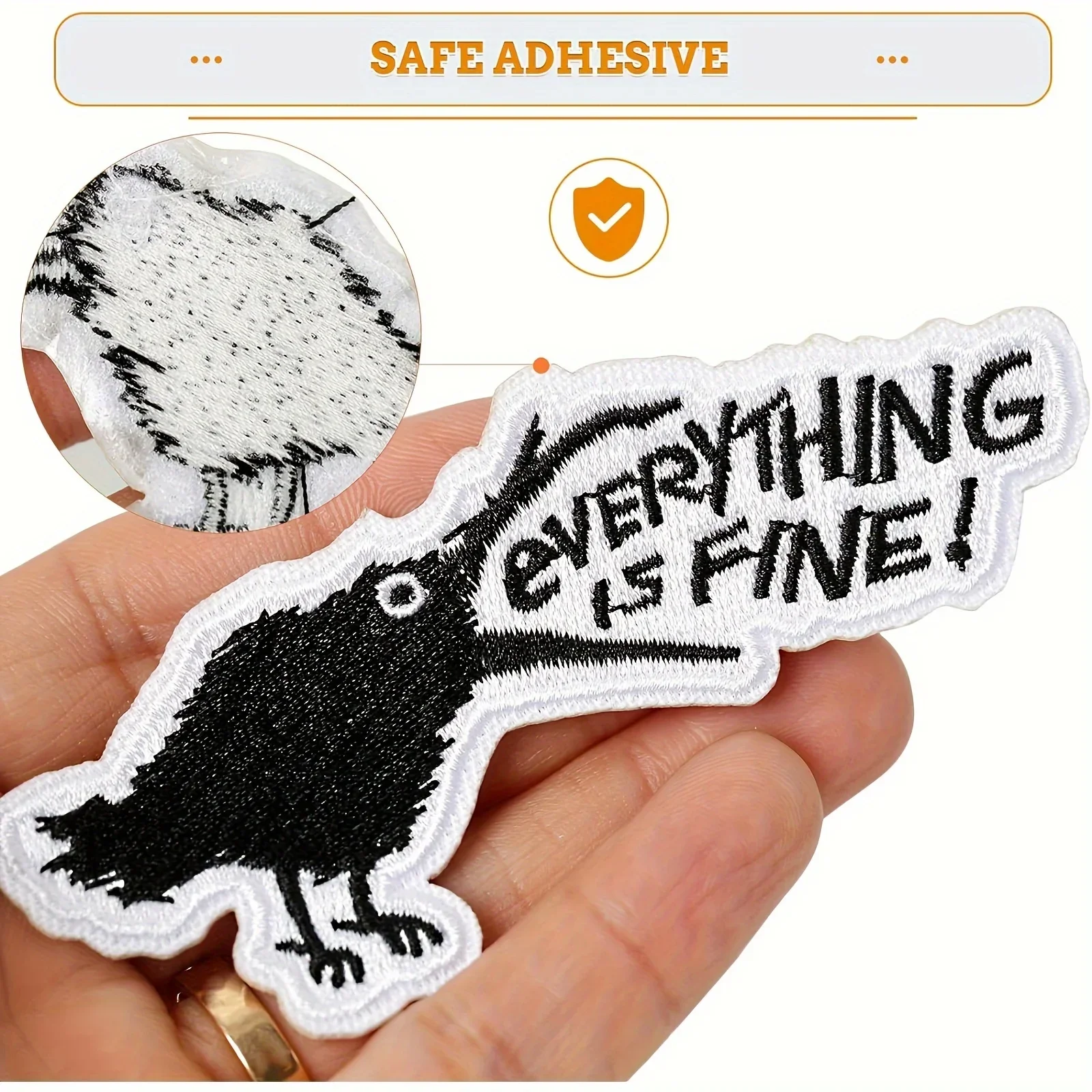 Parche termoadhesivo de cuervo divertido, parche Meme de cuervo "Everything is Fine", para chaquetas, sombreros, mochilas y bricolaje, humor oscuro, peculiar, 1 ud.