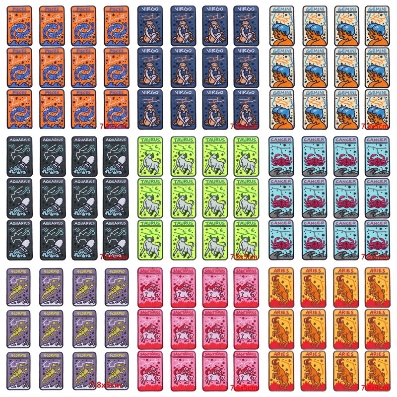 10 unids/lote, parche de doce constelaciones, parches para planchar para ropa, parches termoadhesivos para ropa, Parche de bucle de gancho para ropa