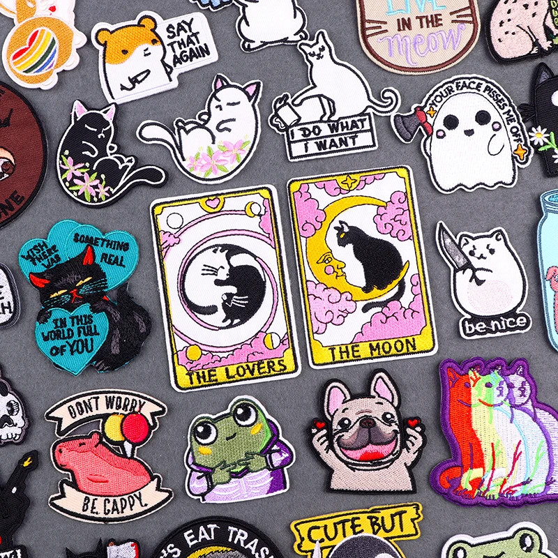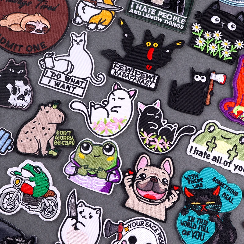 Parche termoadhesivo para planchar con animales bonitos para ropa, parches bordados de gato/rana para ropa, apliques de dibujos animados, insignias DIY