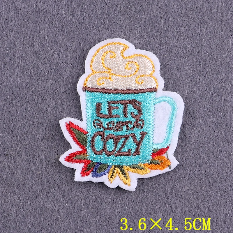 Iron On Patch Drinks Coffee Stickers Clothing Thermoadhesive Patches On Clothes Stripes Cartoon Food Embroidered Patches Badges