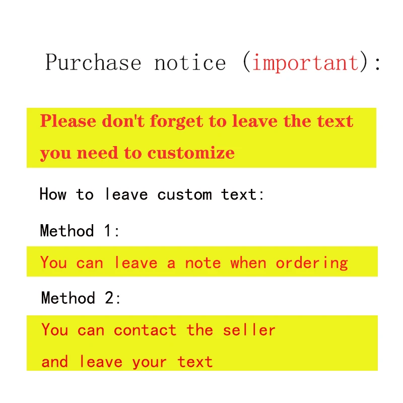 Purchase notice (important): Please don't forget to leave the text you need to customize