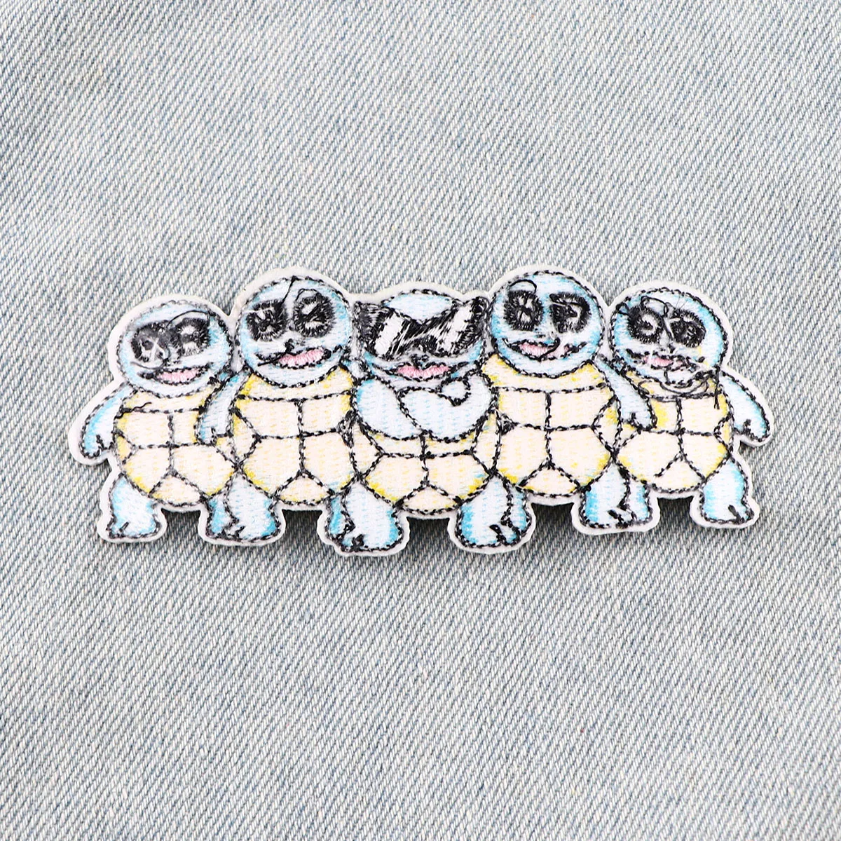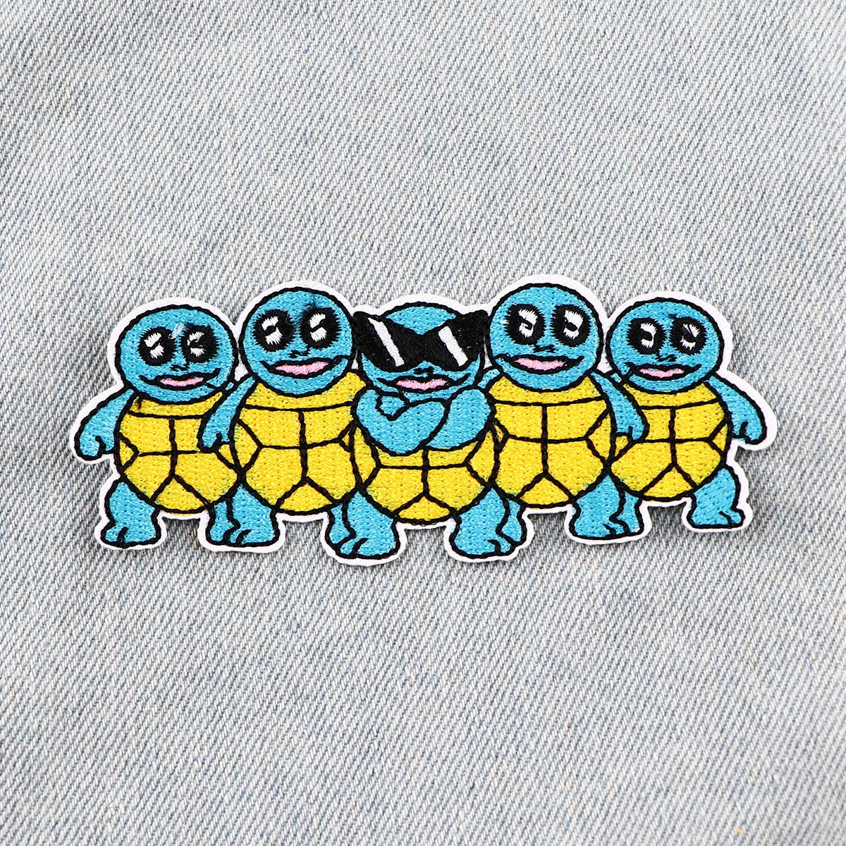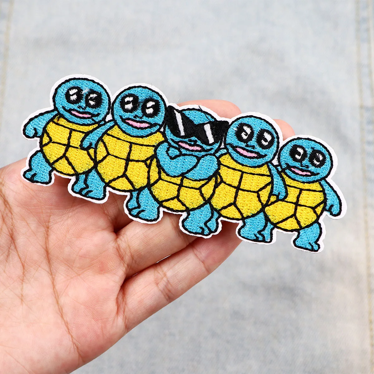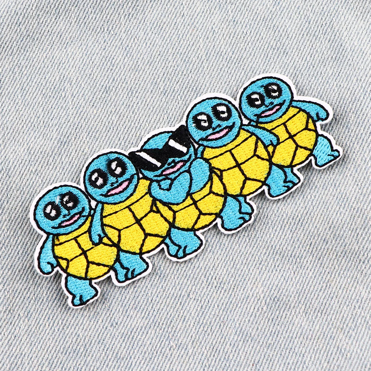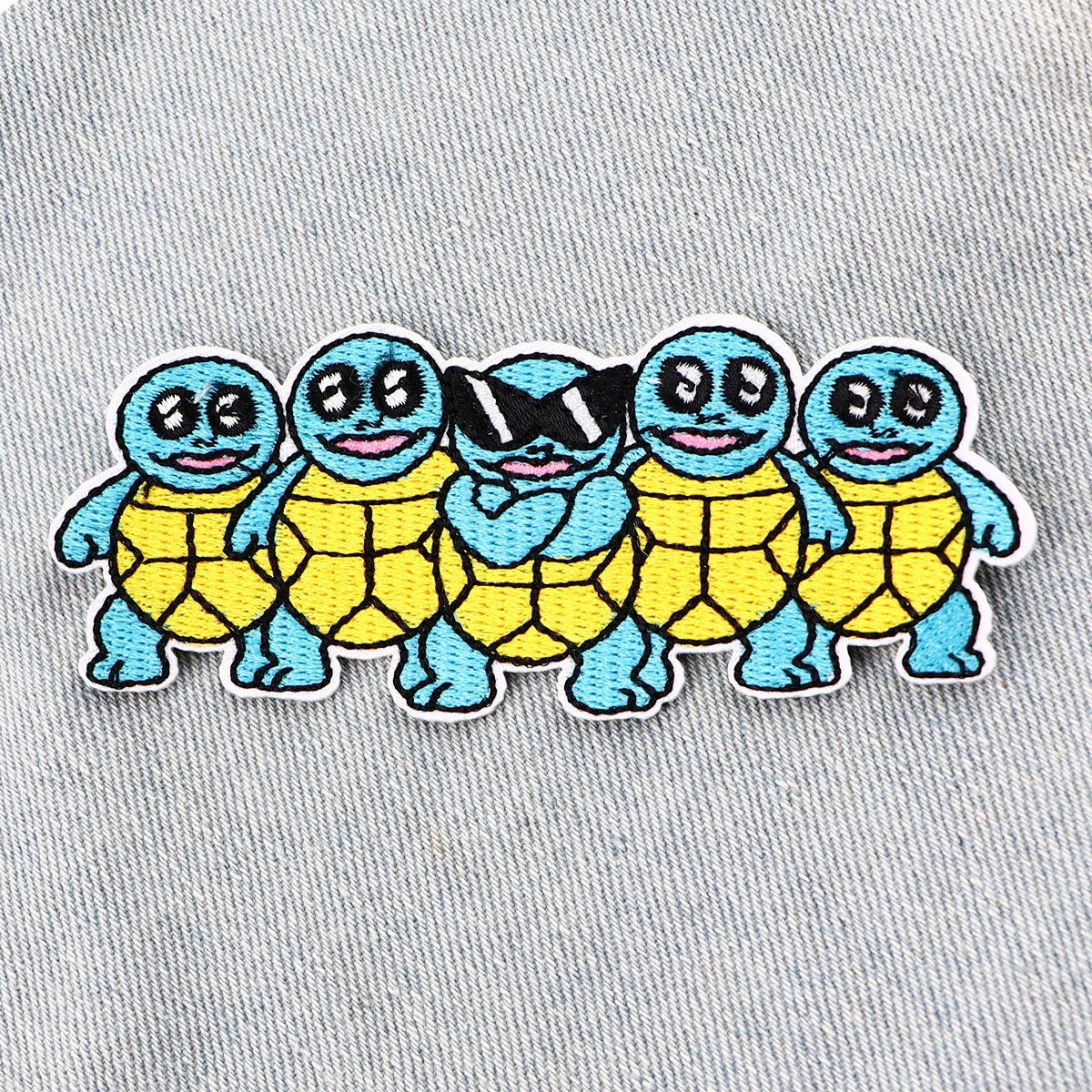 Parche de tortuga bonito para ropa, insignias de juego de dibujos animados de Anime, parches para planchar, parche de tela para coser, pegatina de parche Diy a rayas