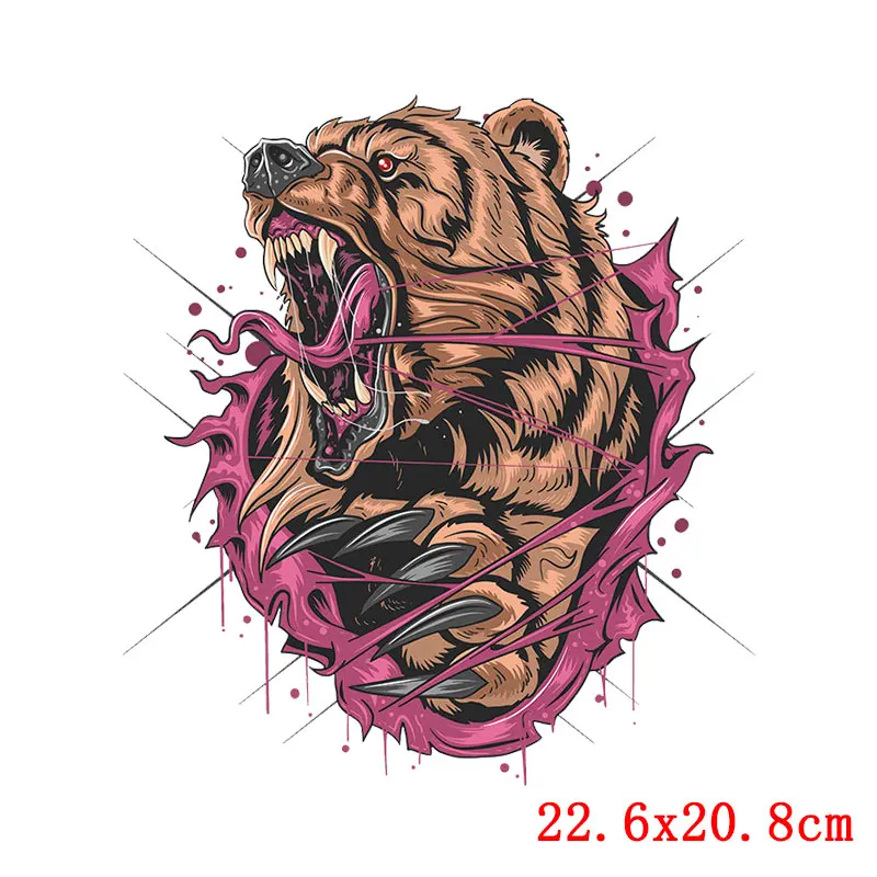 Tigre caballo oso parche de transferencia de calor DIY Punk/colorido Animal hierro en transferencias para ropa camiseta pegatina de hierro para ropa