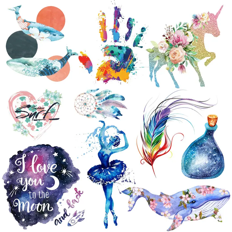 Parche de plumas Diy, transferencia de calor, parche bonito, transferencia de hierro para ropa, Parche de rayas de flores, pegatinas térmicas, parches en camisa