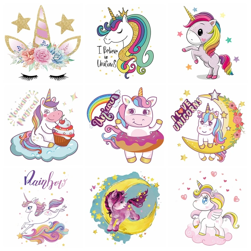 Parche de unicornio, pegatina térmica para ropa, parches de animales de dibujos animados para camiseta, transferencia de planchado para apliques de ropa, decoración térmica