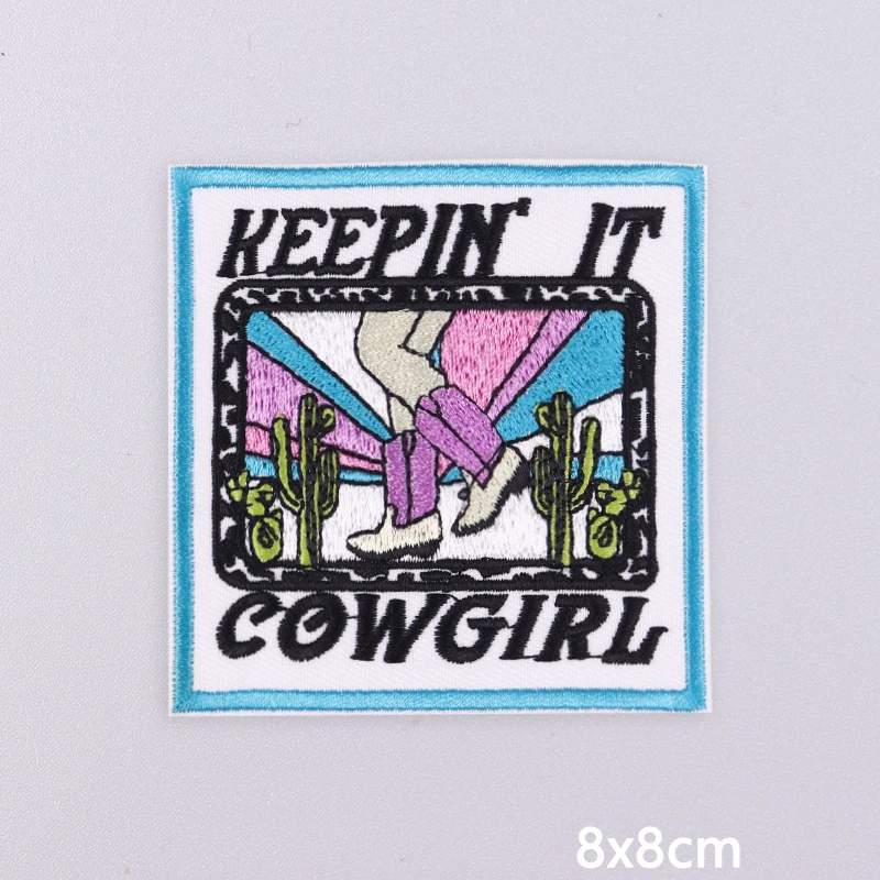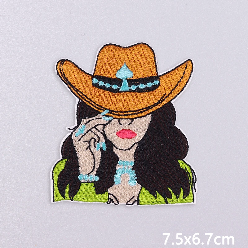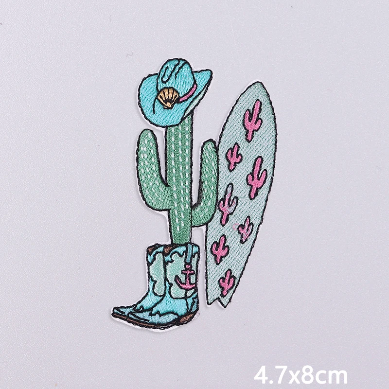 Parche de vaquera de verano, parches de hierro para ropa, pegatina, parches bordados de dibujos animados/cactus en ropa, apliques de costura DIY/fusible