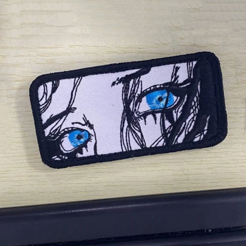 Parches de gancho y bucle bordados de chica Anime "Sad Blue Eyed", insignia de moral táctica, pegatina para mochila