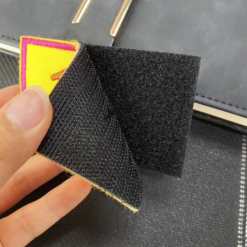 4.parte posterior: si se trata de un gancho y bucle, péguelo directamente en la superficie del bucle.Planche la ropa con plancha si hay pegamento en la parte posterior. También puede coser algunos puntos simples después del planchado si puede, lo hace más firme y duradero. Si no tiene pegamento, séquelelo. en tu ropa.