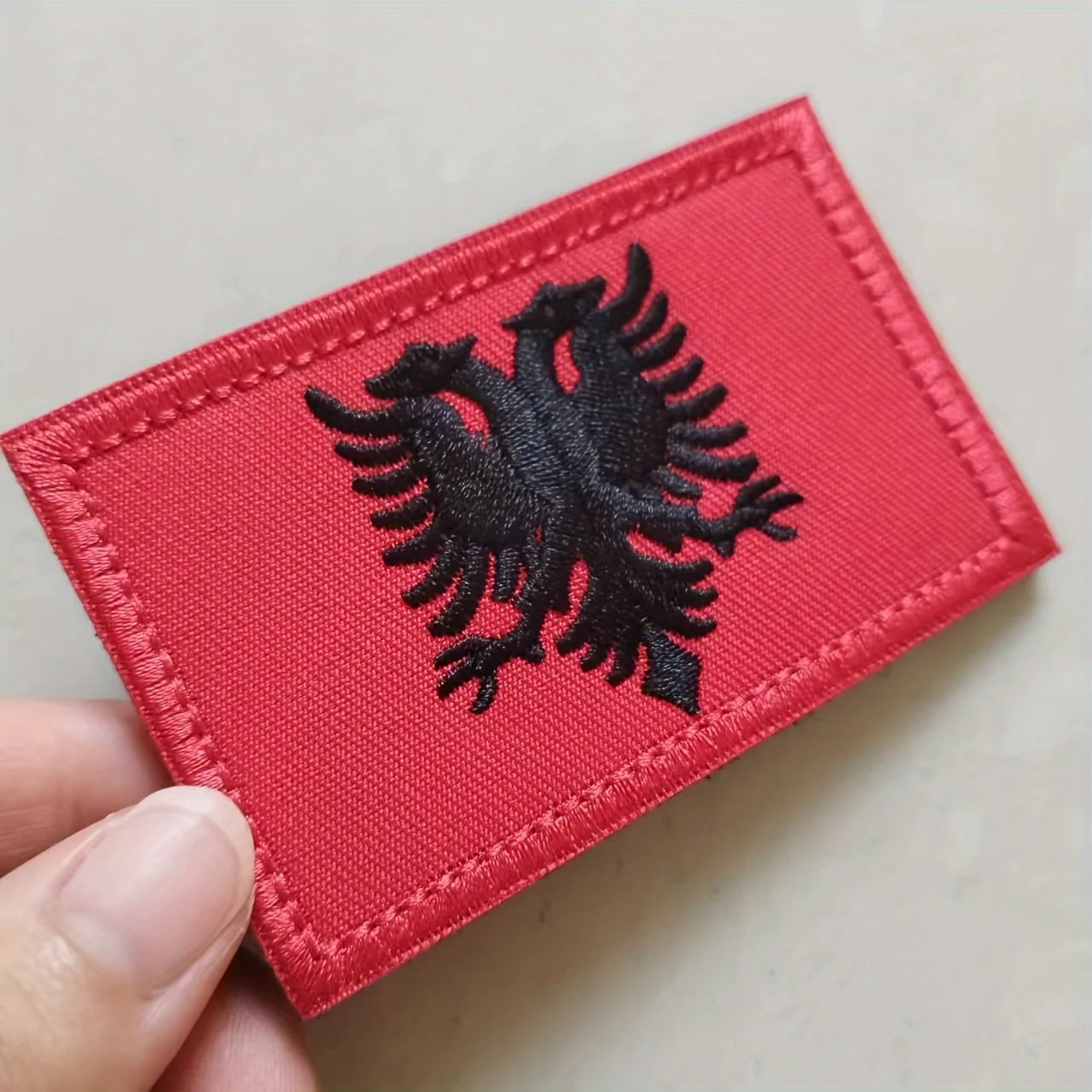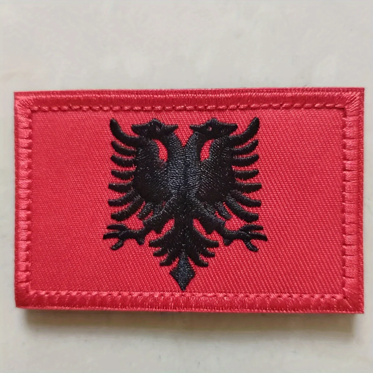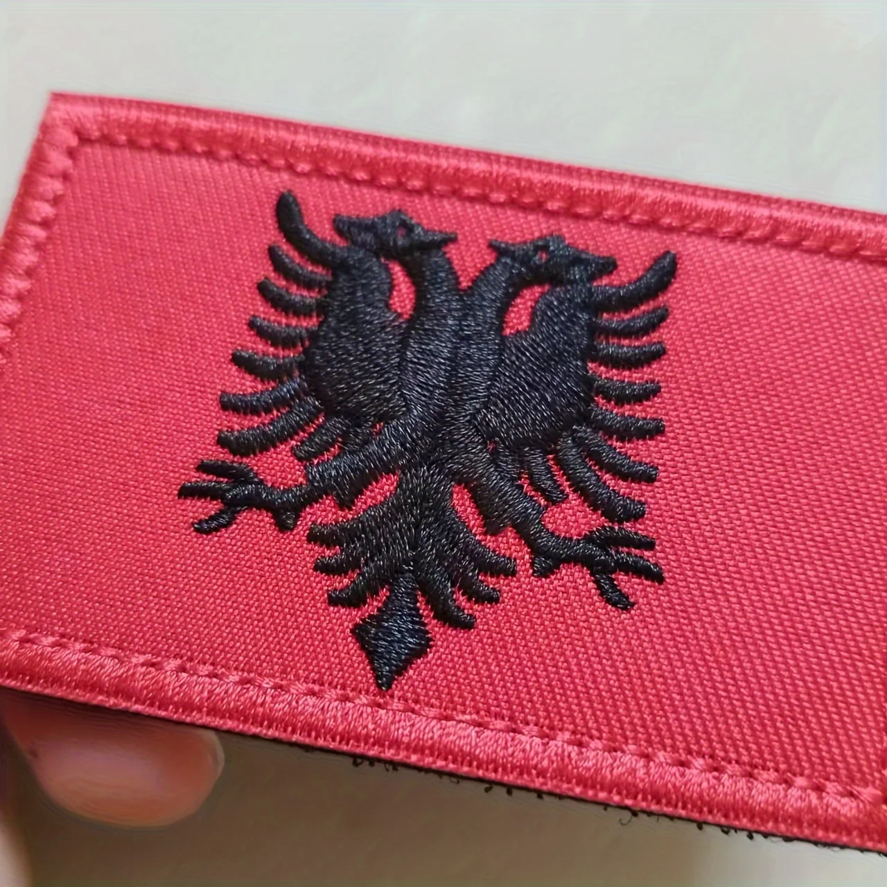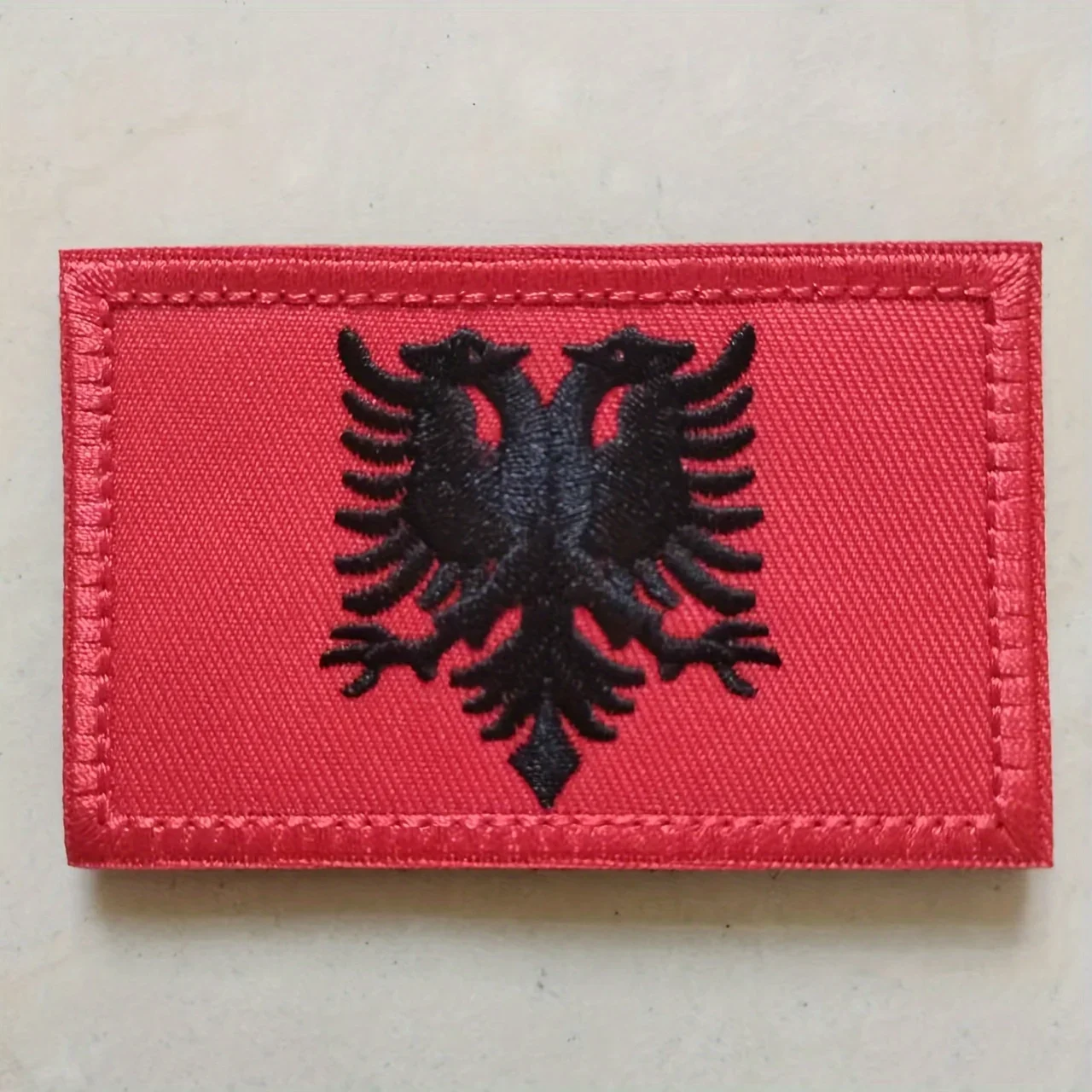 Parche de Velcros bordado con bandera de Albania, gancho y bucle, aplique de insignia de moral táctica para gorras, ropa, mochilas Molle DIY
