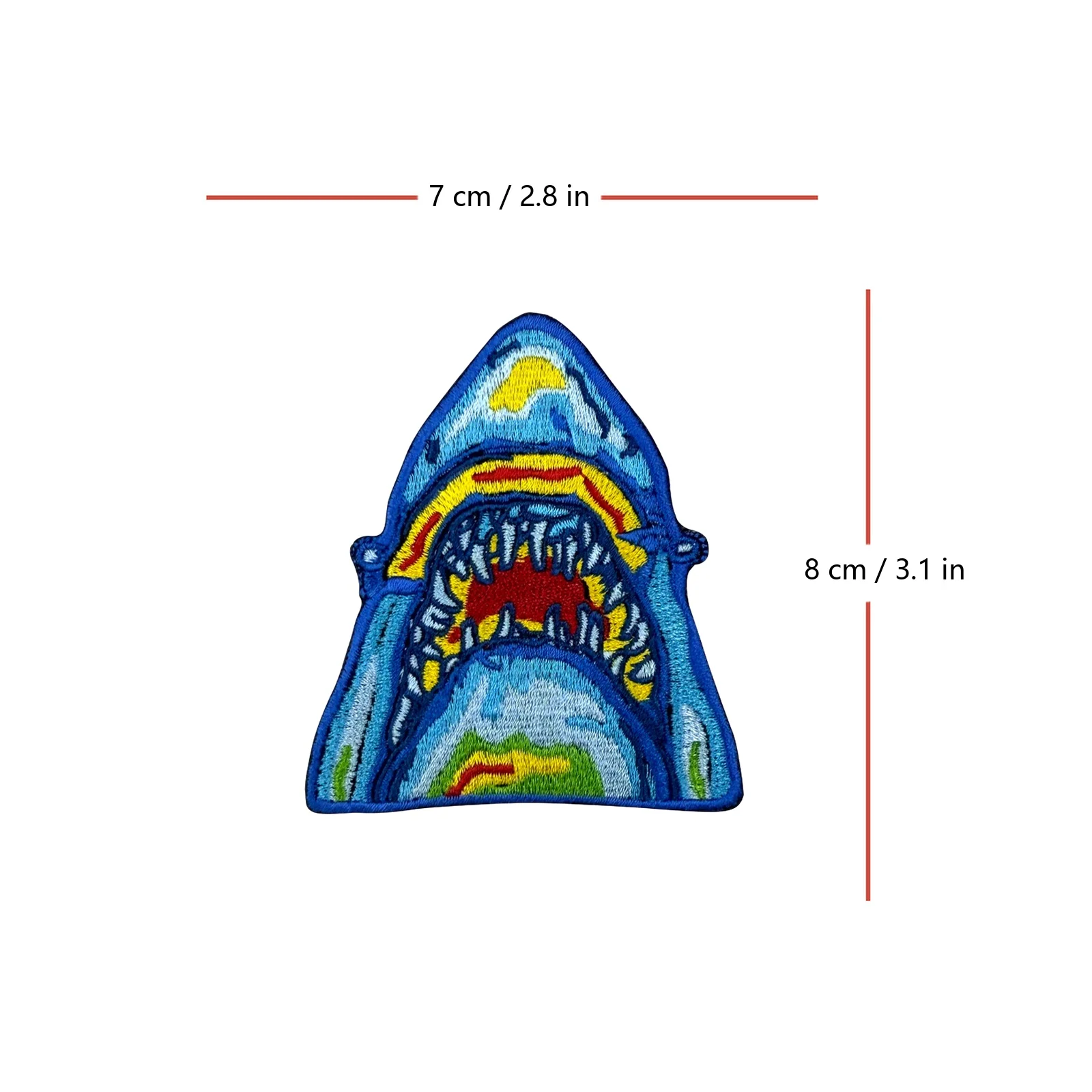 Parche de Velcros bordado de tiburón colorido, insignia divertida con cierre de gancho y bucle para mochila táctica Molle, chaqueta y gorras