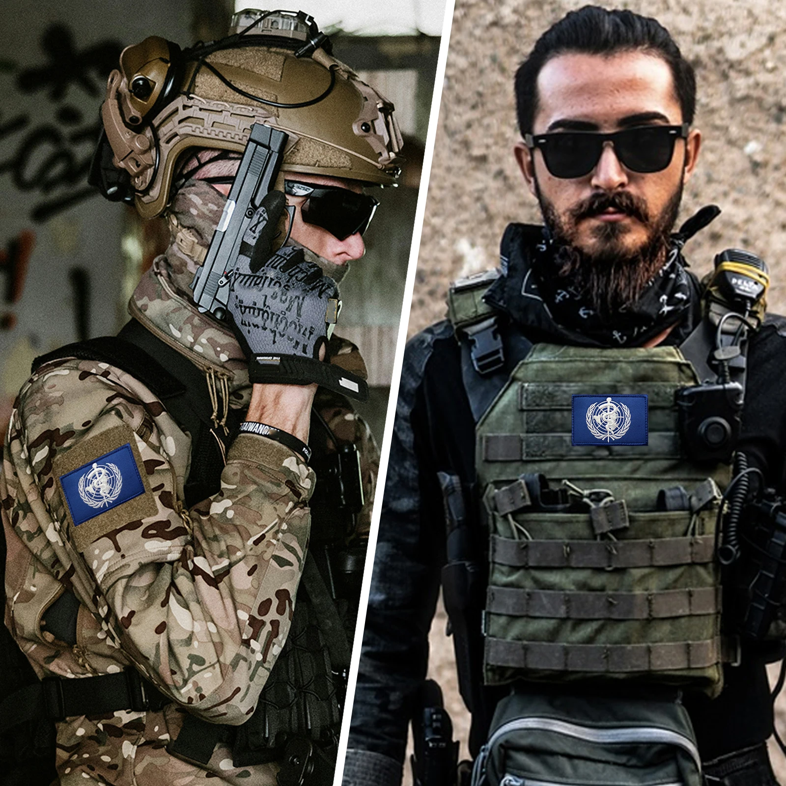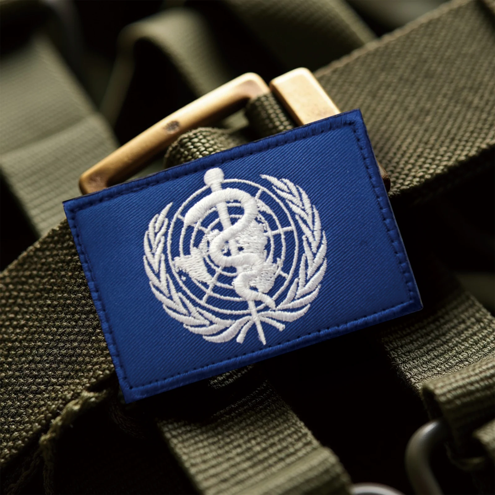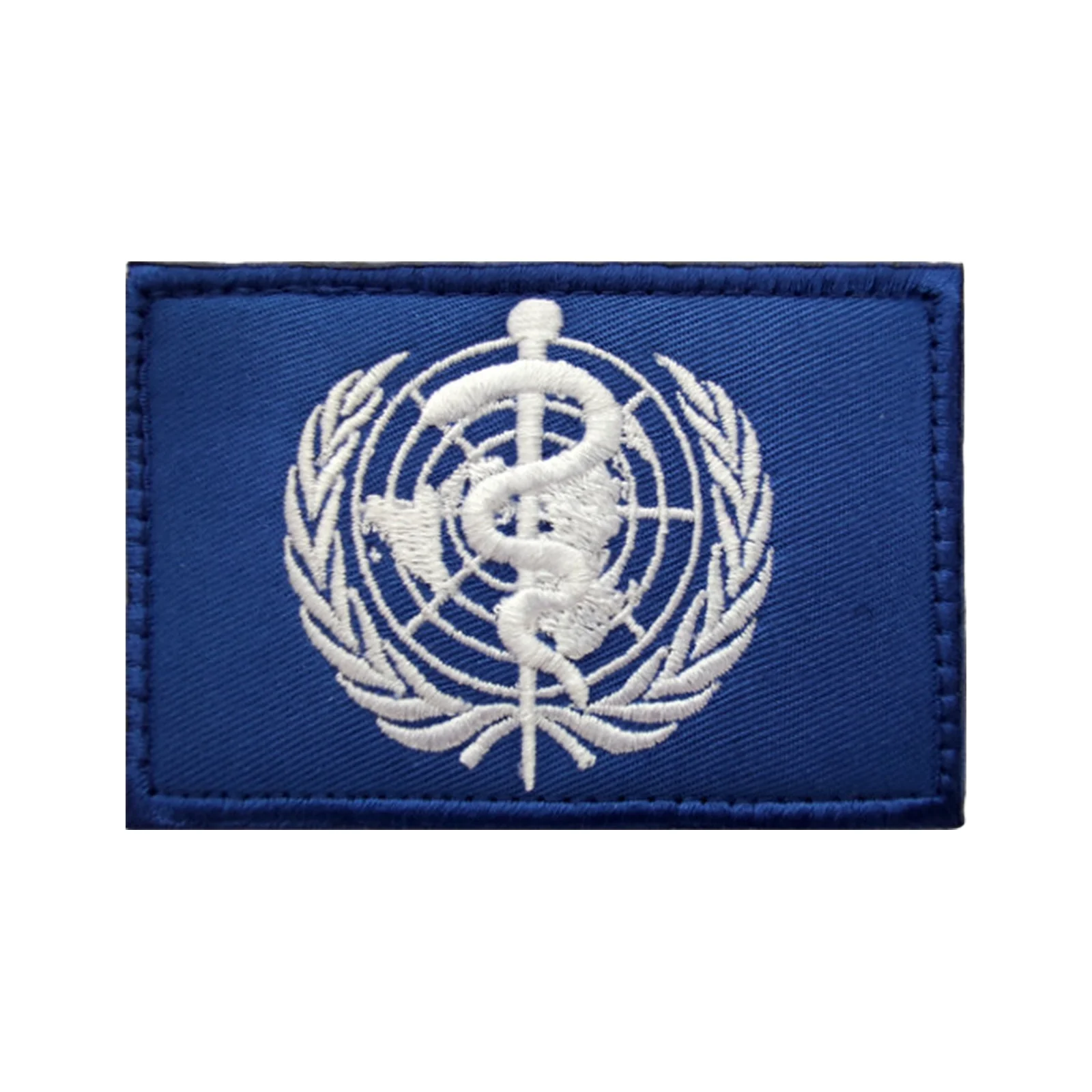 Parche de Velcros con emblema de WHO de las Naciones Unidas (UN), insignia bordada con cierre de gancho y bucle para mochila táctica, chaqueta y gorras
