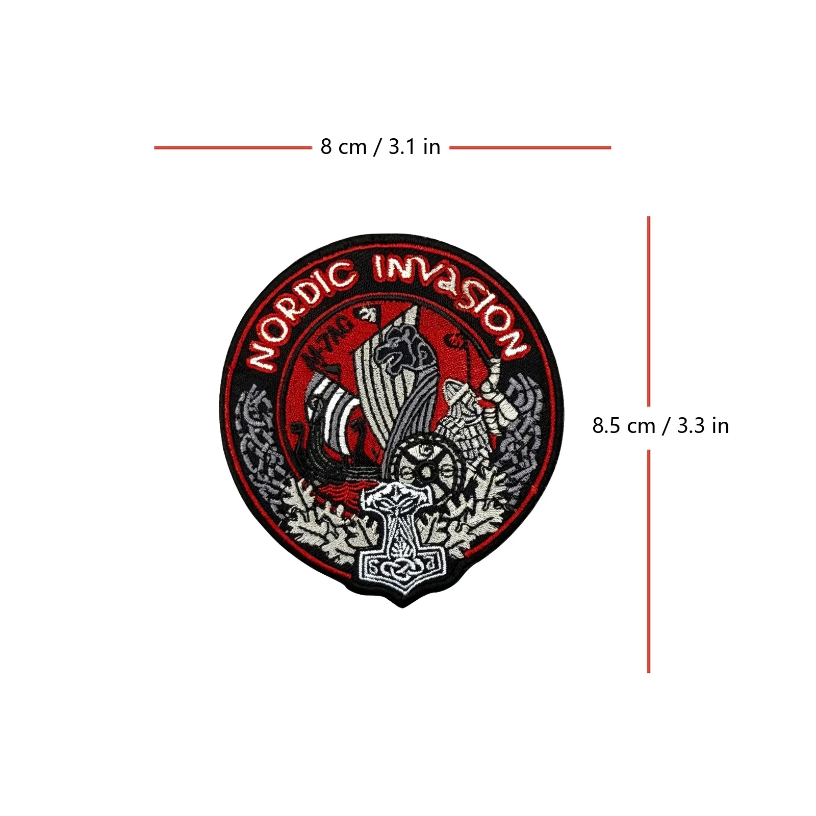 Parche de Velcros de invasión nórdica, insignia bordada con cierre de gancho y bucle divertido para mochila táctica Molle, chaqueta y gorras
