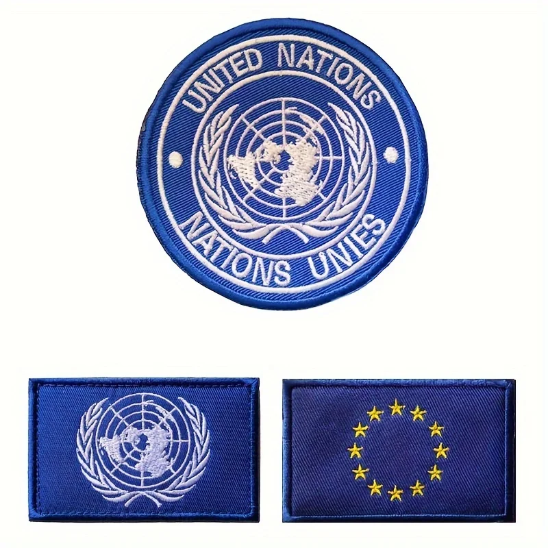 Parche de Velcros con medalla bordada de Unión Europea (UE), emblema de la bandera de las Naciones Unidas (UN), insignia decorativa para mochila, 1 ud.