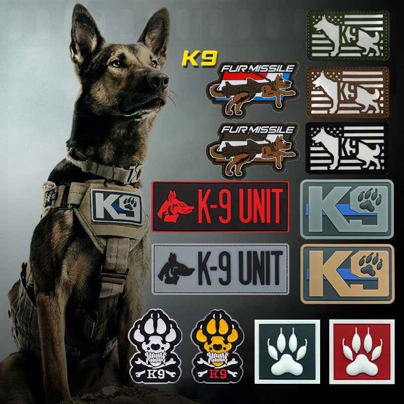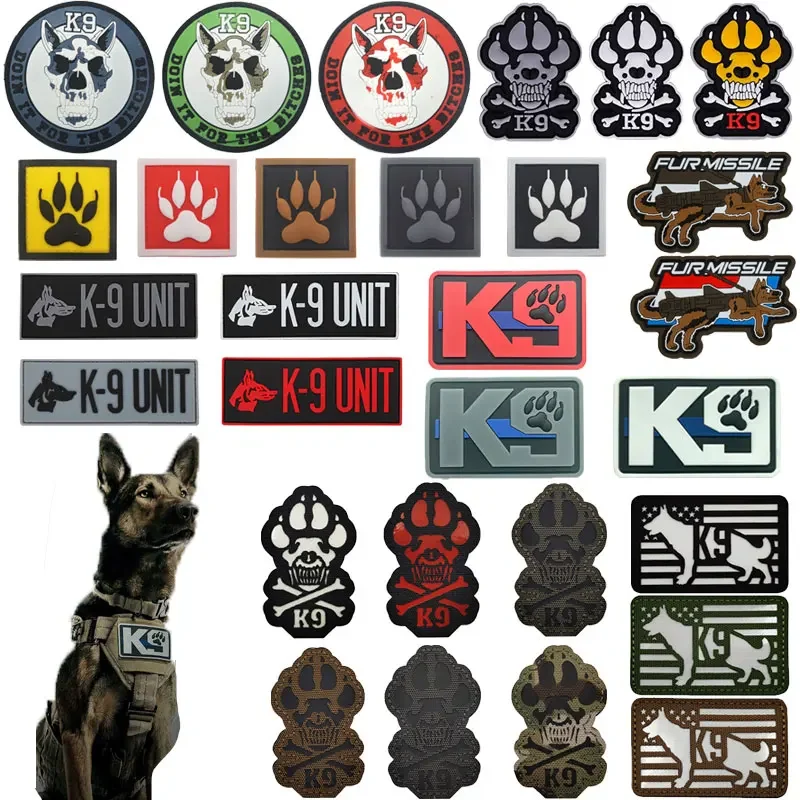 Parches 3D K9 de PVC, servicio de rescate, perro militar, parche de gancho y bucle, insignia, accesorio táctico luminoso, brazalete reflectante