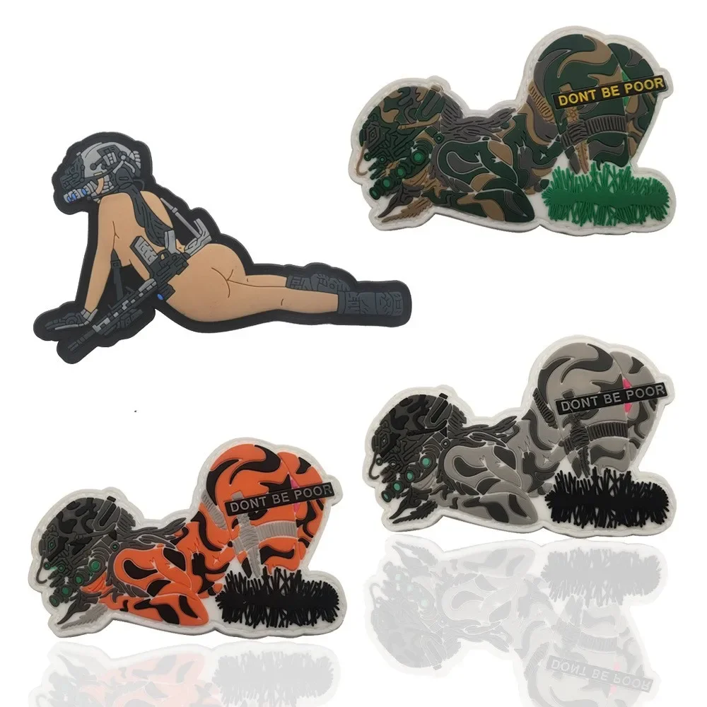Parches de gancho y lazo adhesivos suaves de PVC 3D para ropa, pegatina de belleza de visión nocturna, insignia de moral táctica para mochila, parche para chaqueta
