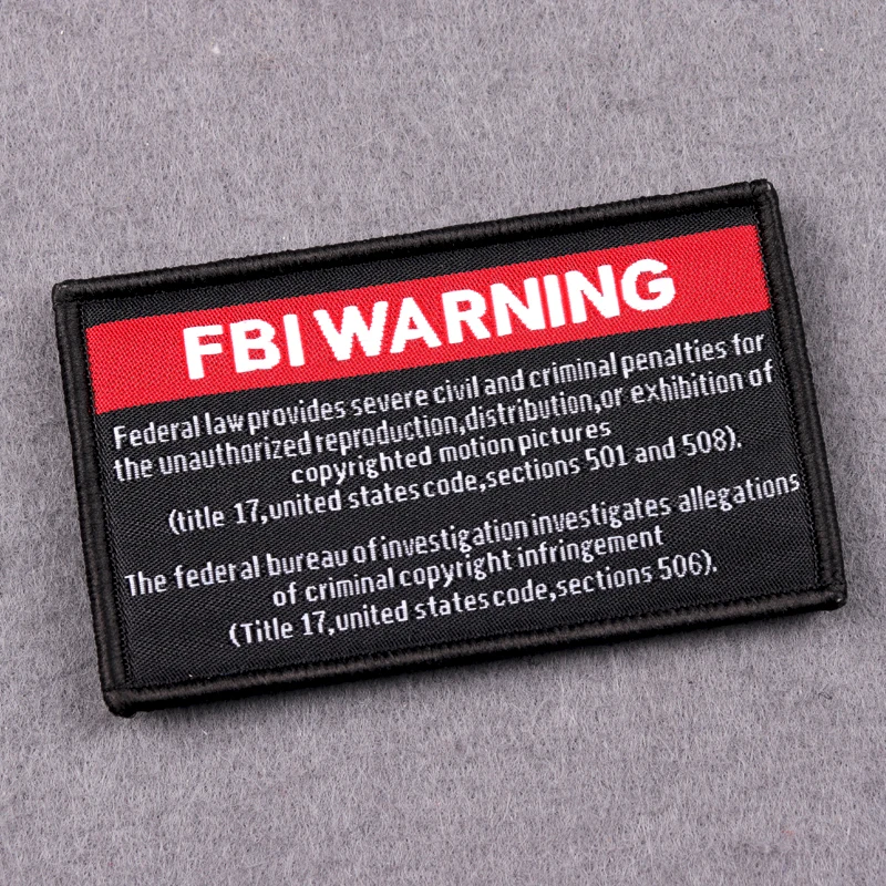FBI WARNING Patches For Clothing hook loop Patch Sewing Patches For Clothes Woven Patch Sewing On Clothes Stickers Badges