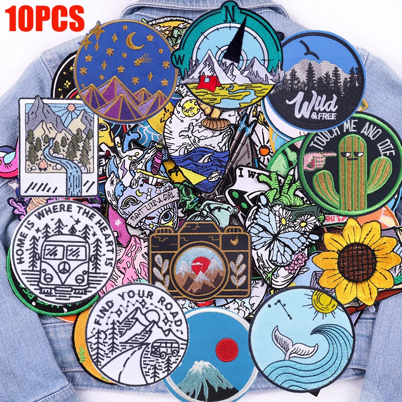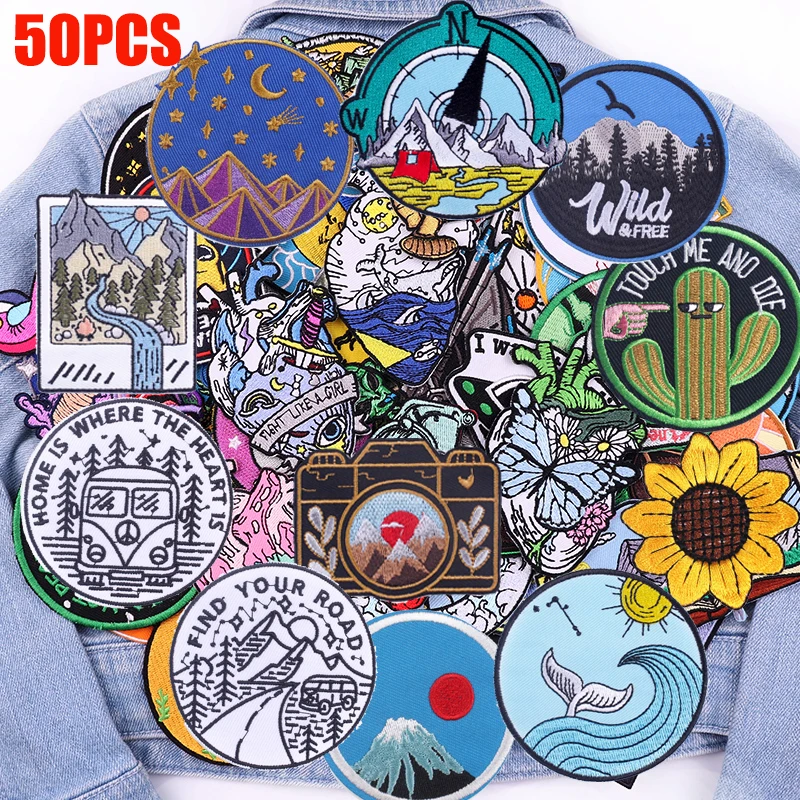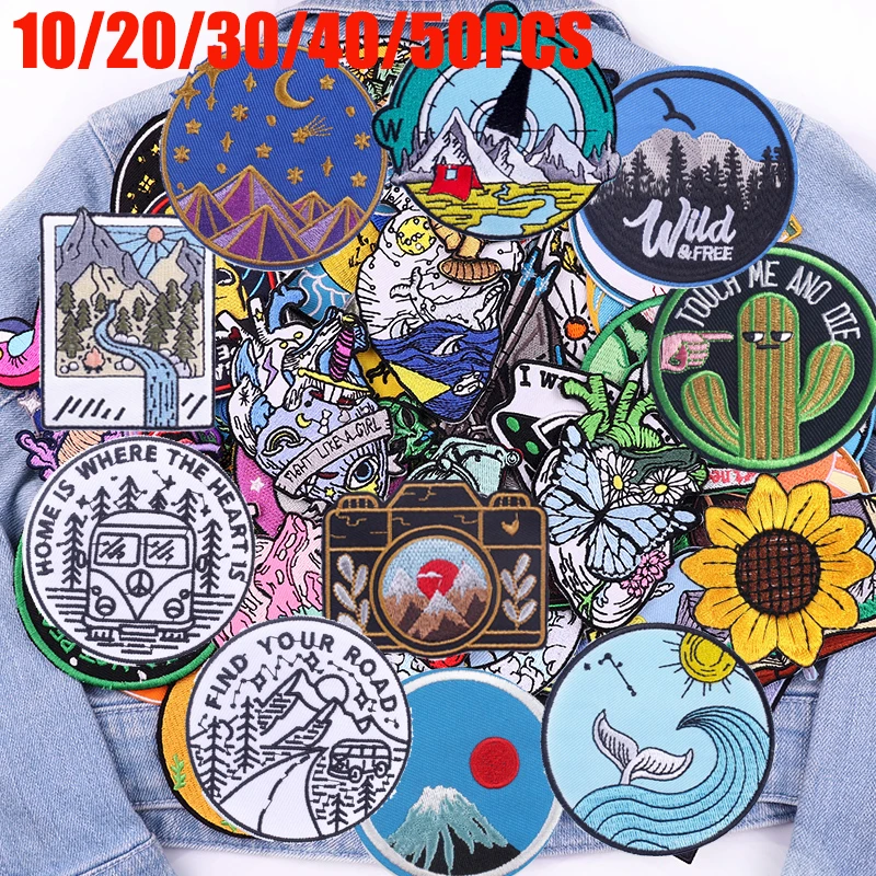 Parches aleatorios para acampar en montaña, parches bordados para ropa, parche de aventura al aire libre, parches para planchar DIY, 10/20/30/40/50 Uds.