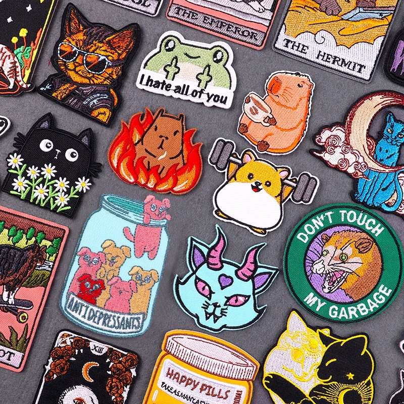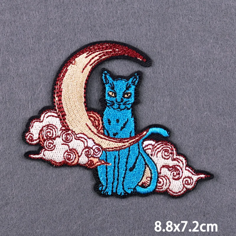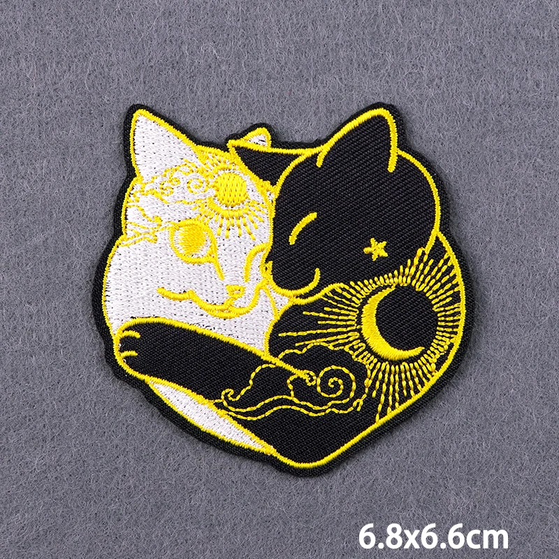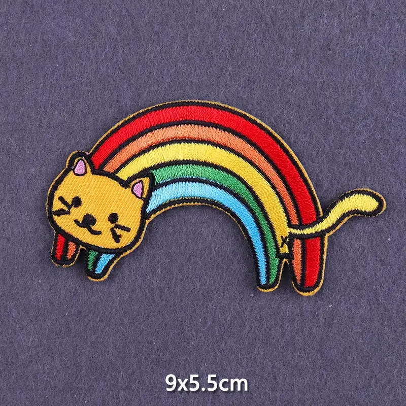 Parches de animales de dibujos animados Hippie para planchar en la ropa, pegatinas de planchado bordadas DIY, insignia de parche Fusible de gato lindo