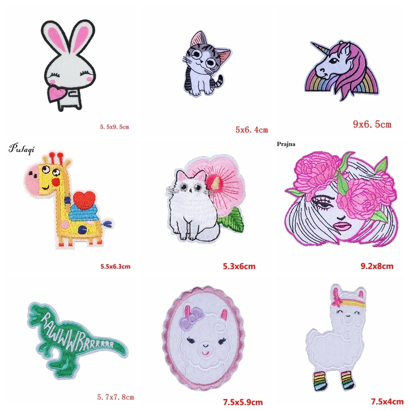 Parches de animales para niños, ropa bordada de dibujos animados, 10 unids/lote por parche bordado para plancha