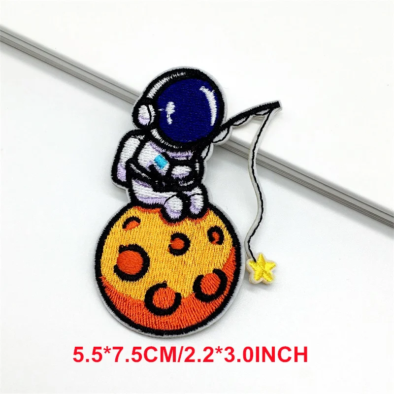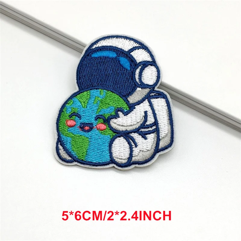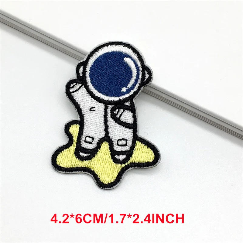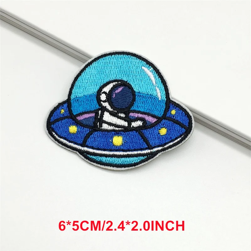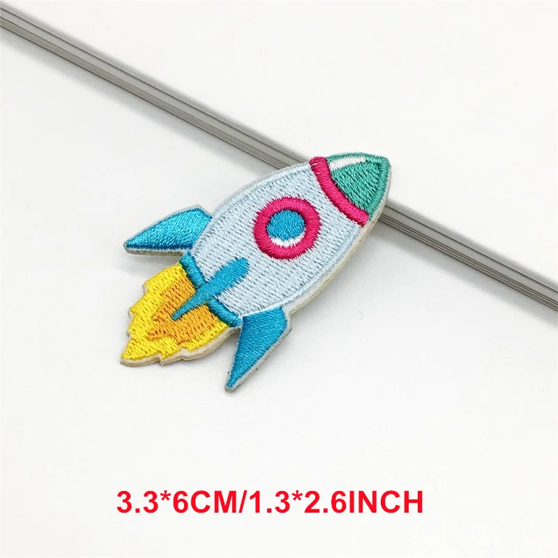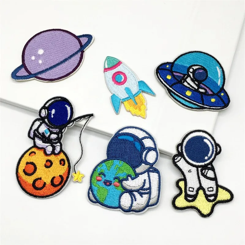 Parches de astronauta de dibujos animados en la ropa, Pegatina autoadhesiva, rayas para ropa, parches bordados, apliques, insignia de cohete, 6 unidades por lote