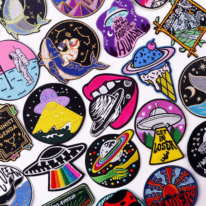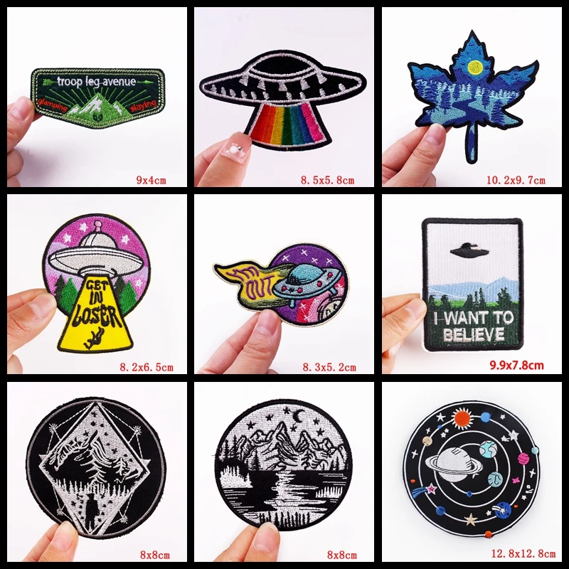 Parches de astronauta del espacio OVNI, en la ropa para planchar parches bordados, parches de aventura al aire libre DIY para ropa, pegatinas, insignias