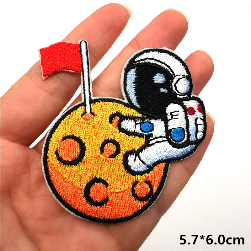 Parches de astronauta de Luna espacial, insignias autoadhesivas, costura de rayas, sombrero, chaqueta, apliques, pegatinas para ropa, parches bordados para planchar en la ropa