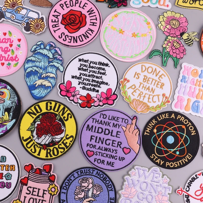 Parches autoincoriantes para planchar para ropa, parche termoadhesivo, parches bordados de señales positivas para ropa, pegatina de personalidad