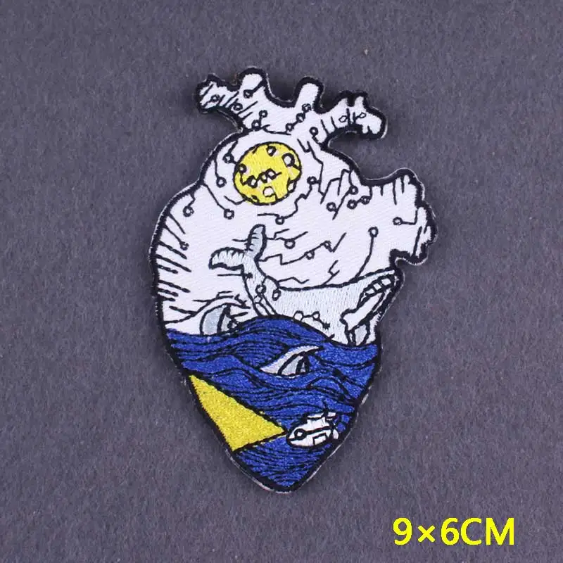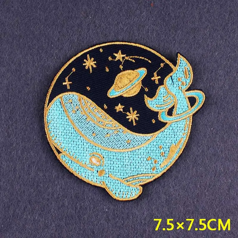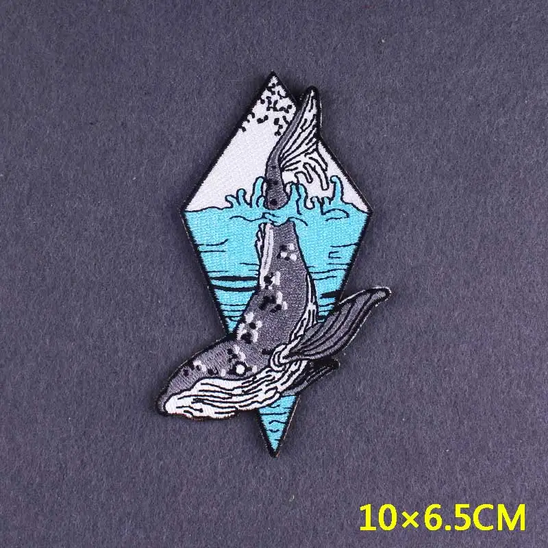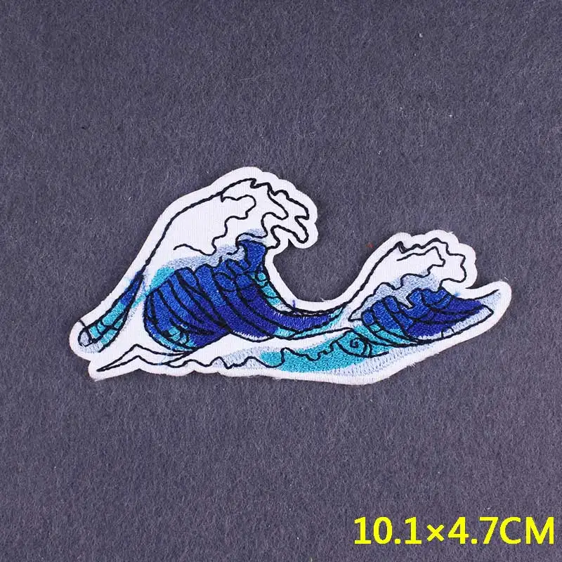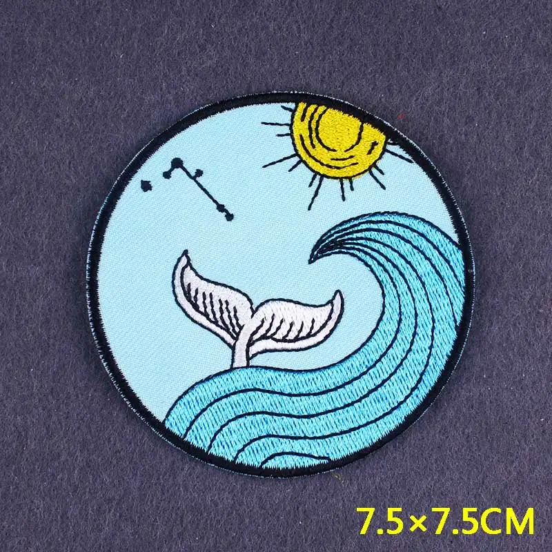 Parches de hierro de ballena para ropa, Parche de aventura para acampar, rayas naturales, Parche de Van Gogh DIY, parches bordados en la ropa