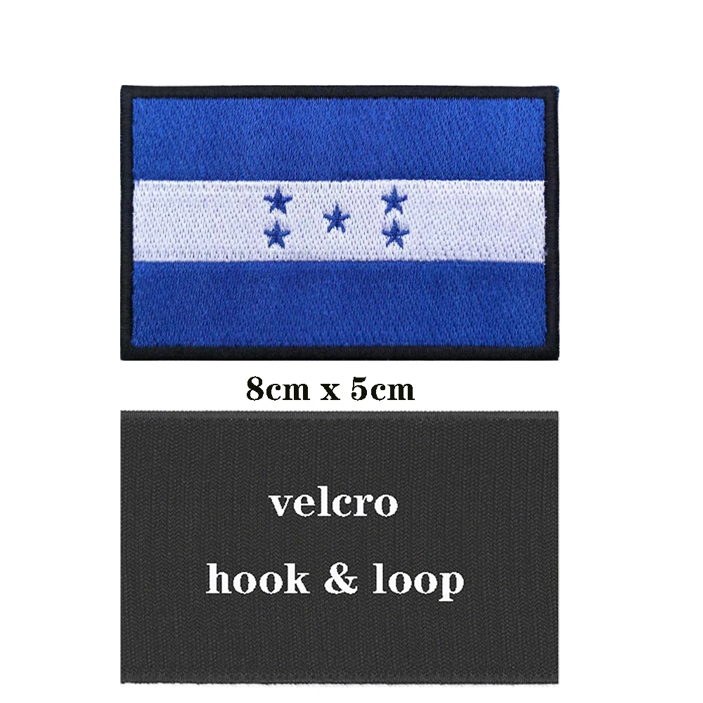 Parches de bandera de Honduras para brazalete, parche bordado con gancho y bucle o plancha, insignia bordada, raya militar, 1 ud.